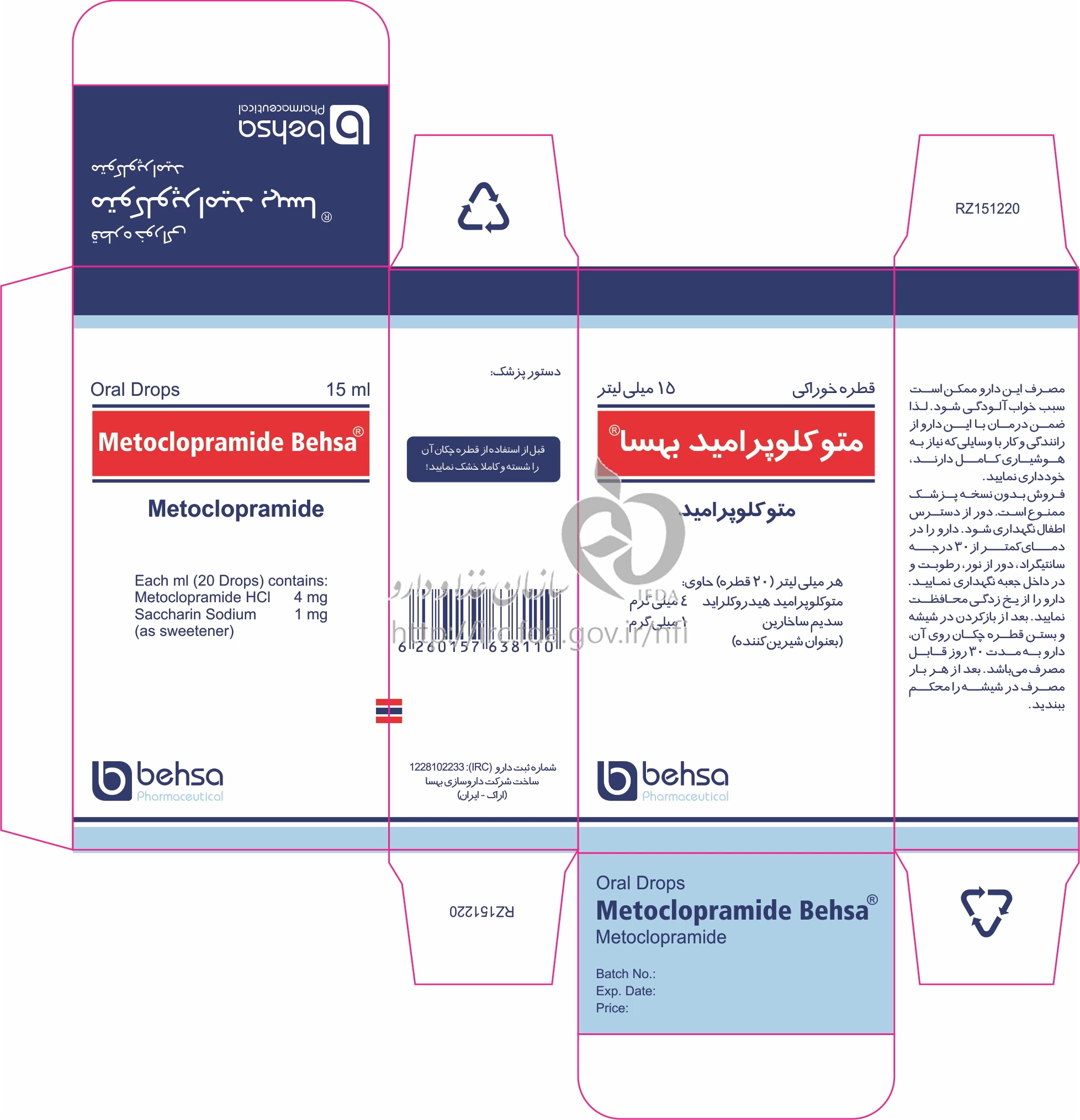 لیست پادکست ها متوکلوپرامید محلول ، قطره خوراکی 4 mg/1mL 15MILLILITER
