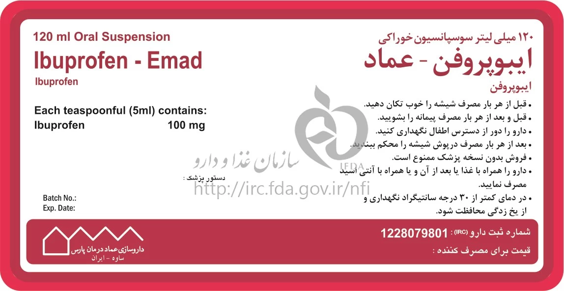 ایبوپروفن - عماد سوسپانسیون خوراکی 100 mg/5mL 120MILLILITER