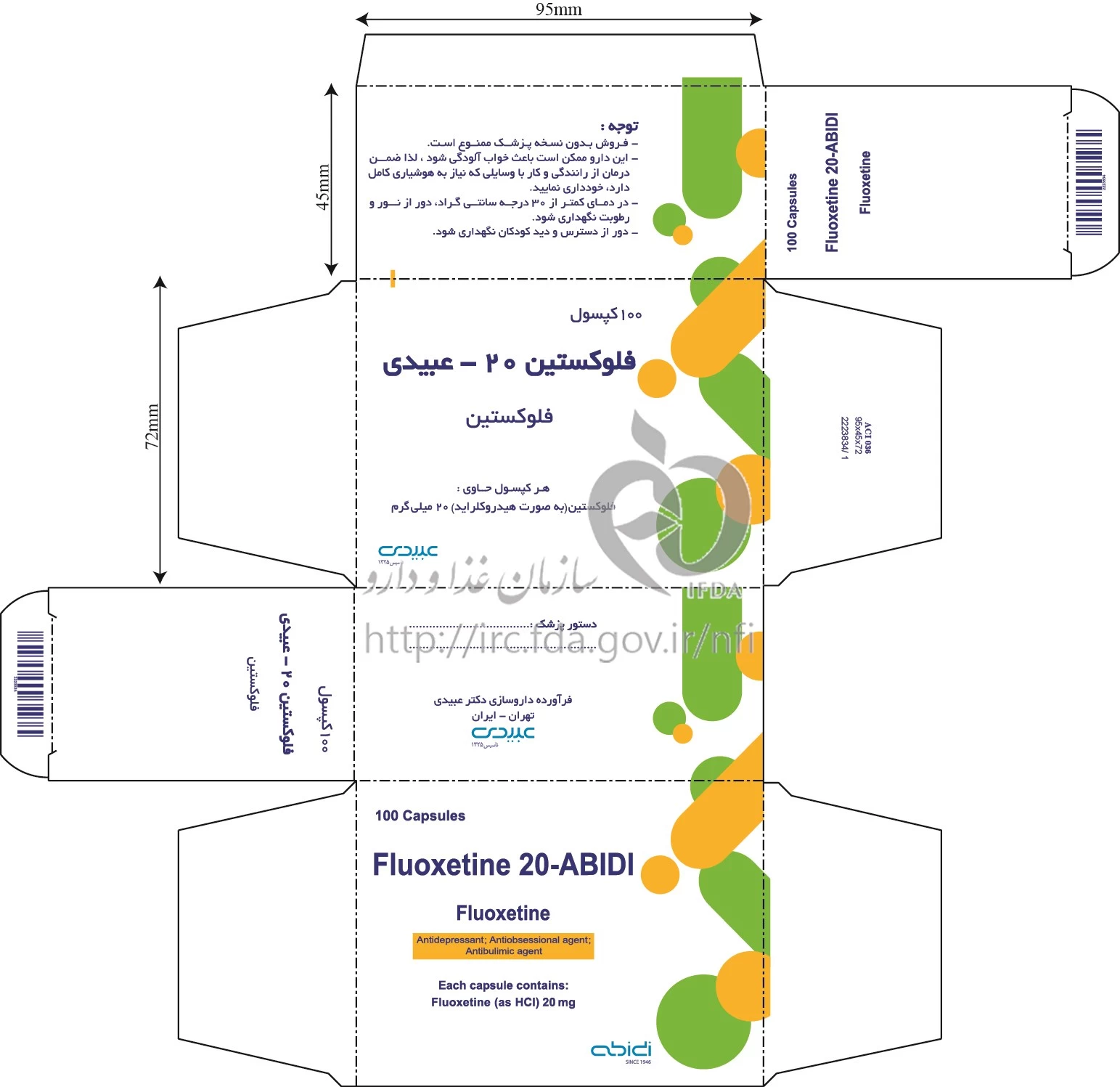 فلوکستین - عبیدی کپسول خوراکی 20 mg