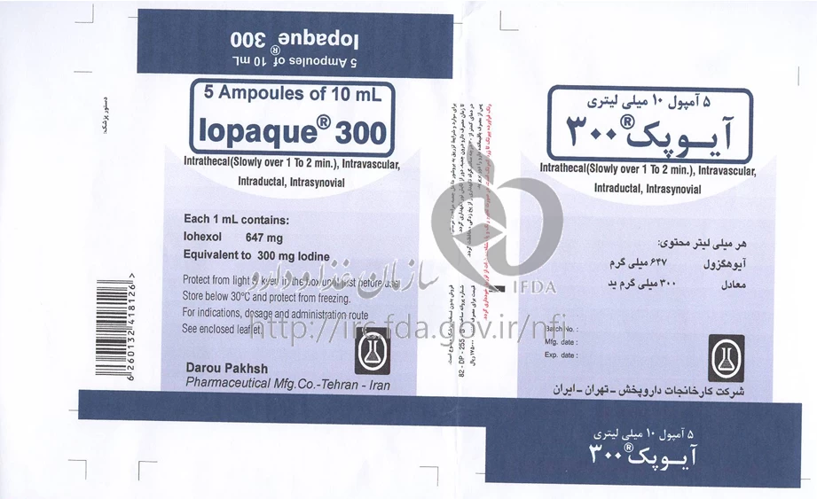 موارد مصرف آیوپک تزریقی پرنترال 300 mg/1mL 10MILLILITER