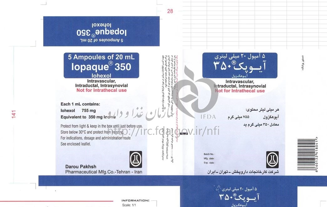 آیوپک تزریقی پرنترال 350 mg/1mL 20MILLILITER
