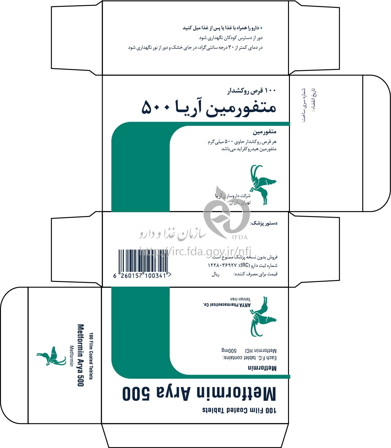 موارد مصرف ، عوارض جانبی ، مصرف بارداری و تداخلات دارویی متفورمین آریا قرص خوراکی 500 mg
