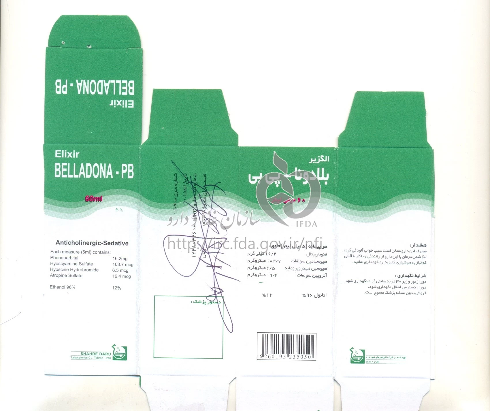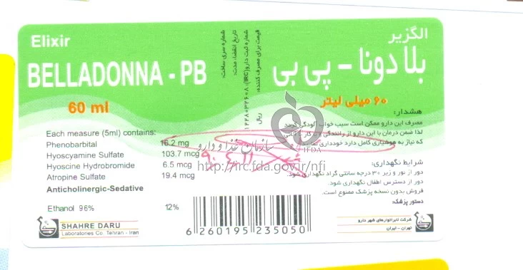 بلادونا پی بی الگزیر خوراکی 19.4 ug/6.5 ug/103.7 ug/16.2 mg/5mL