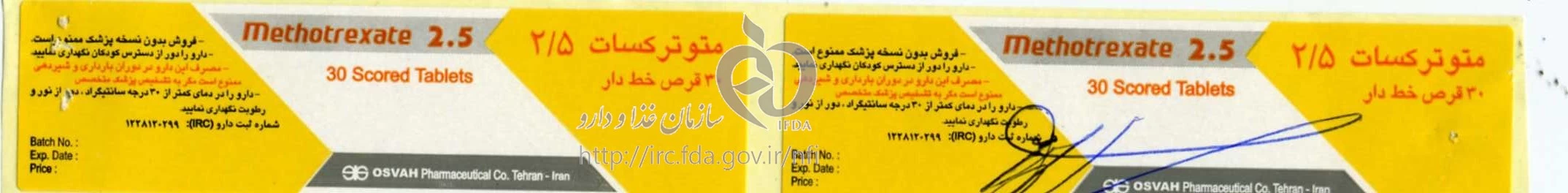 متوترکسات 2/5 میلی گرم قرص خوراکی 2.5 mg