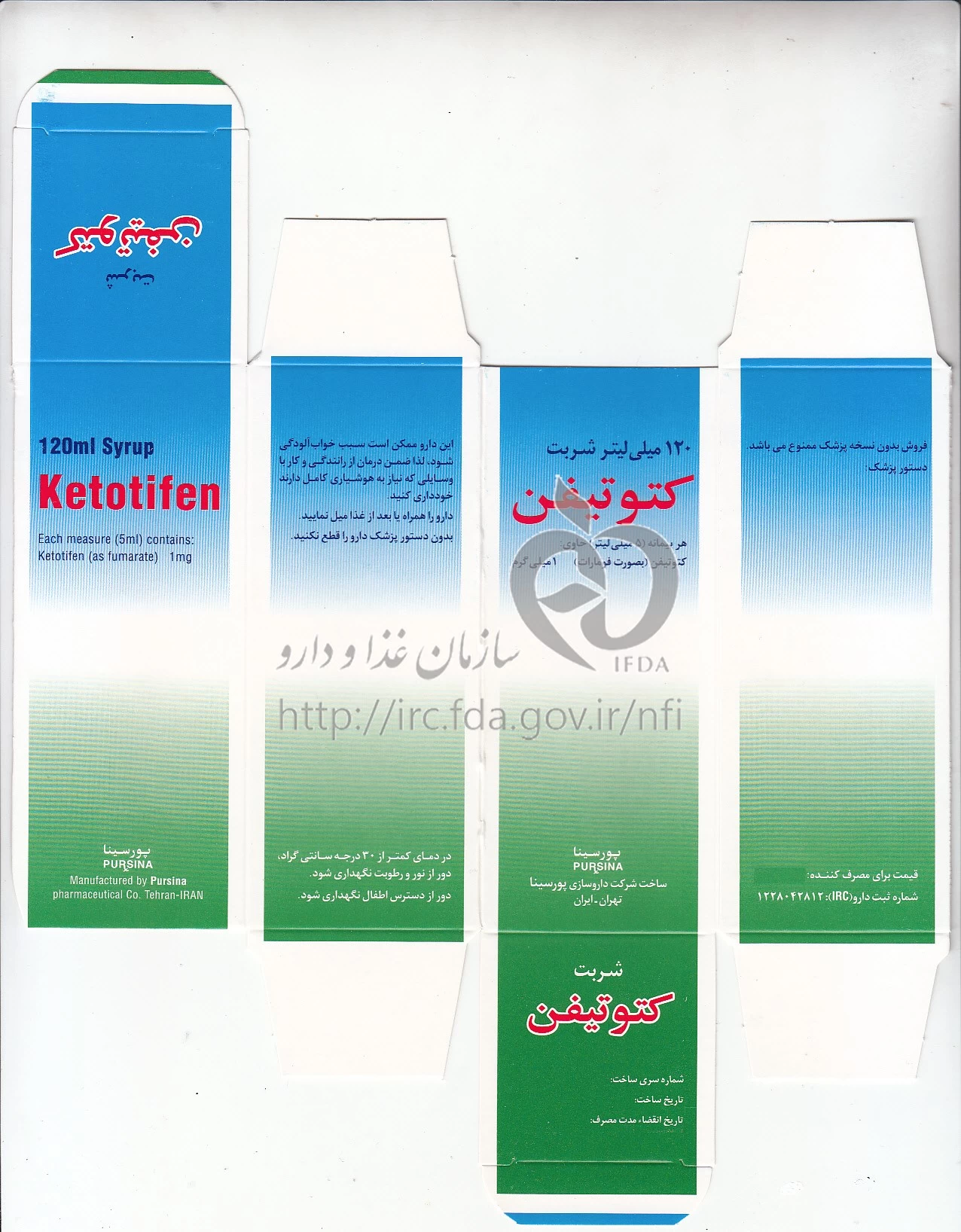 کتوتیفن شربت خوراکی 1 mg/5mL 120MILLILITER