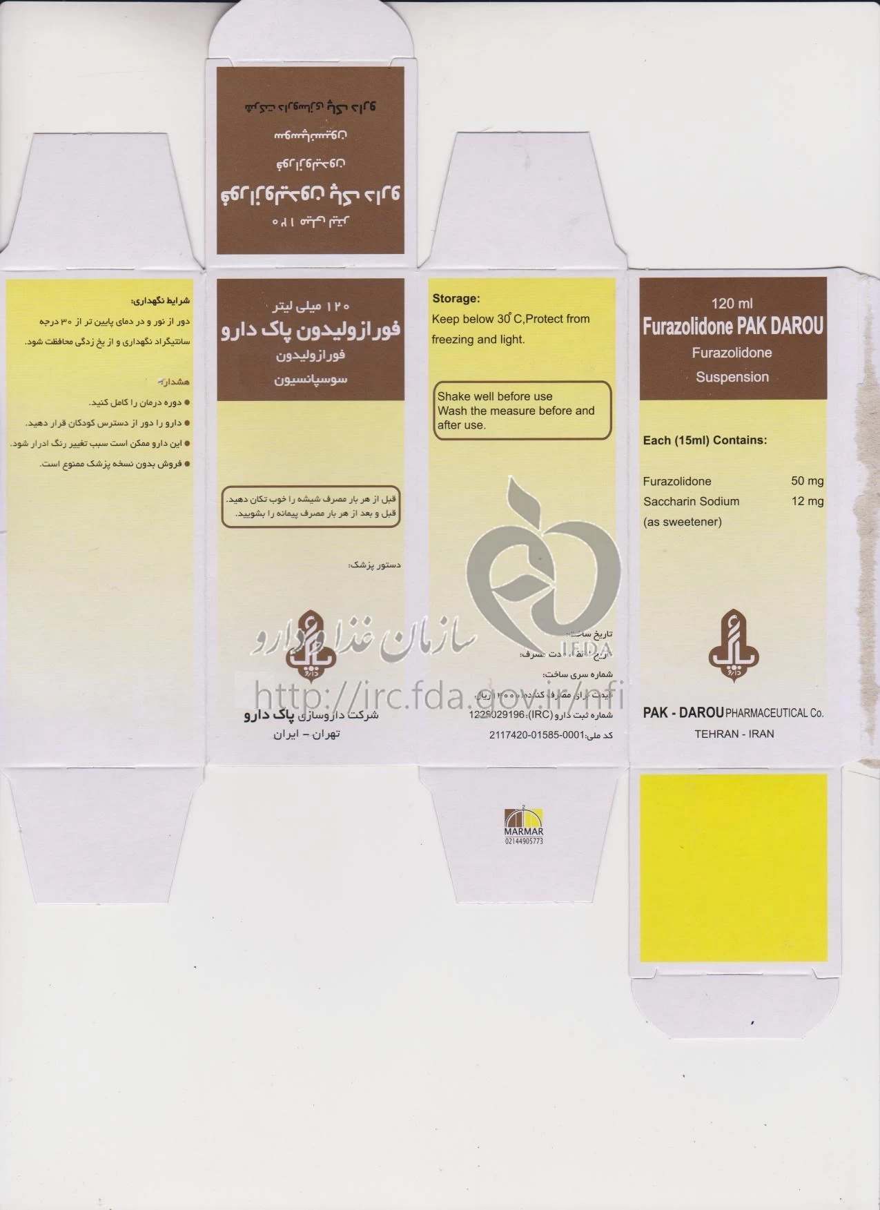 فورازولیدون پاک دارو سوسپانسیون خوراکی 50 mg/15mL 120MILLILITER