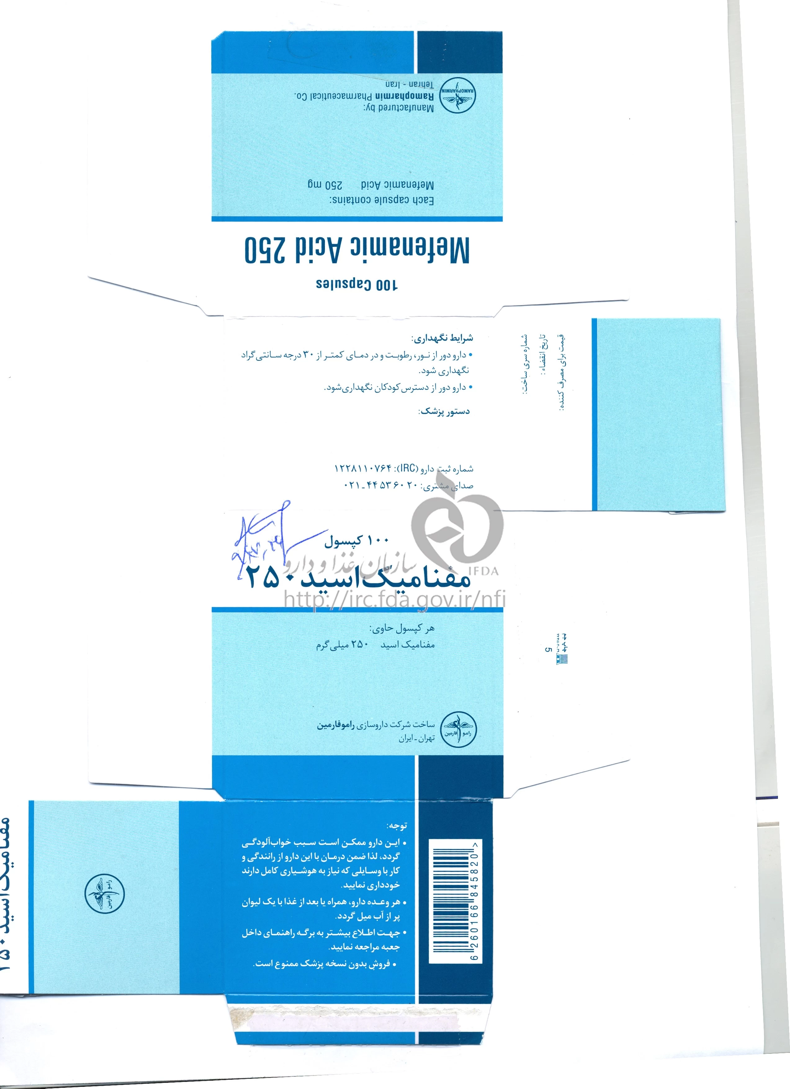 نکات قابل توصیه مفنامیک اسید کپسول خوراکی 250 mg