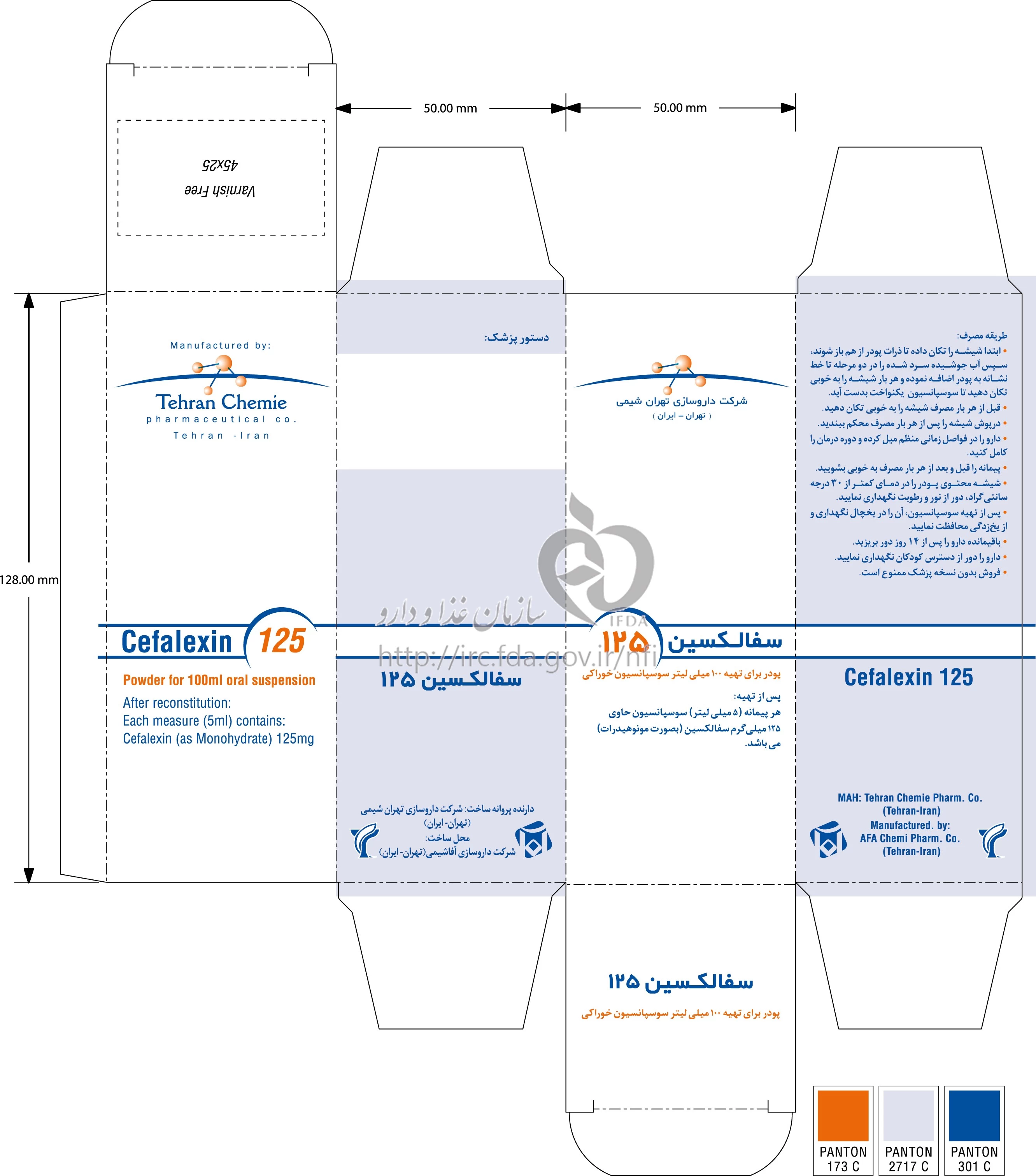 سفالکسین 125 پودر برای تهیه سوسپانسیون خوراکی 125 mg/5mL 100MILLILITER