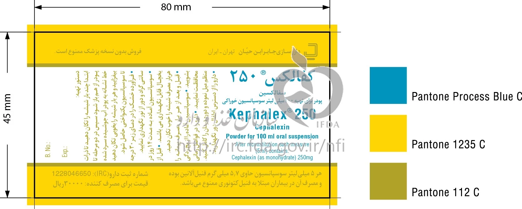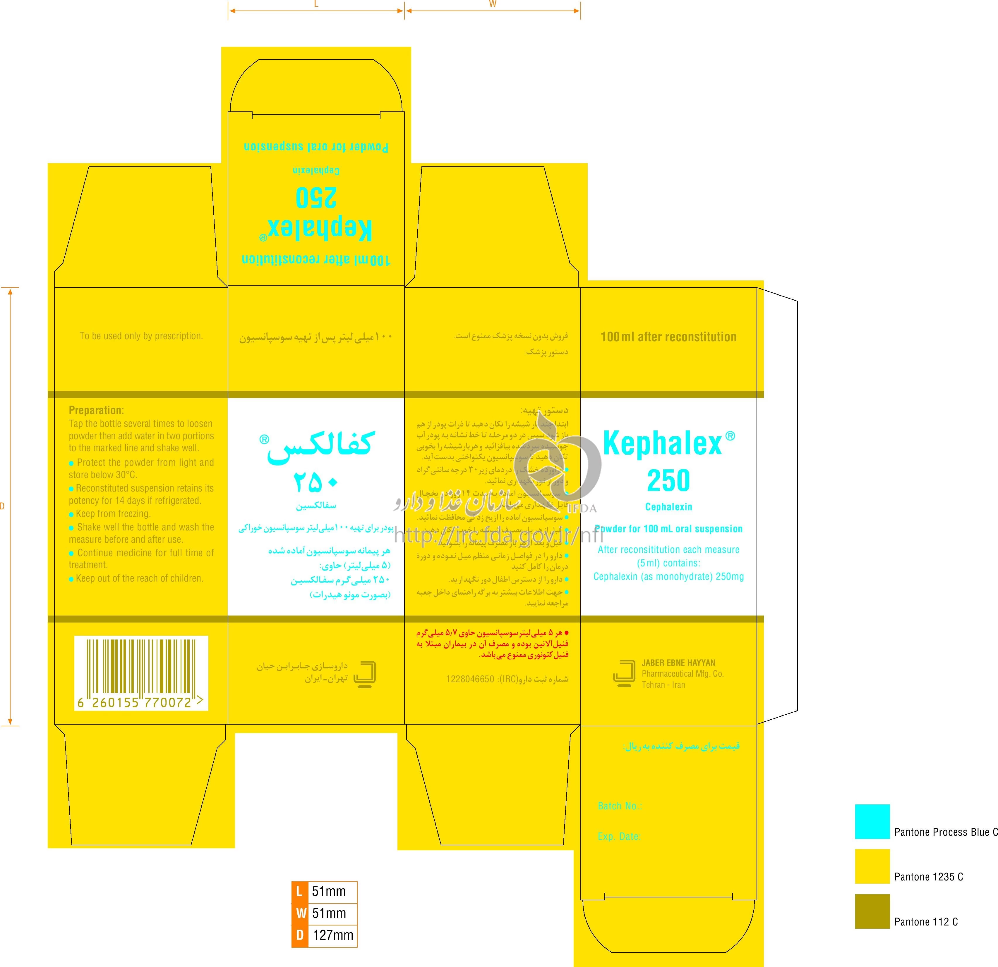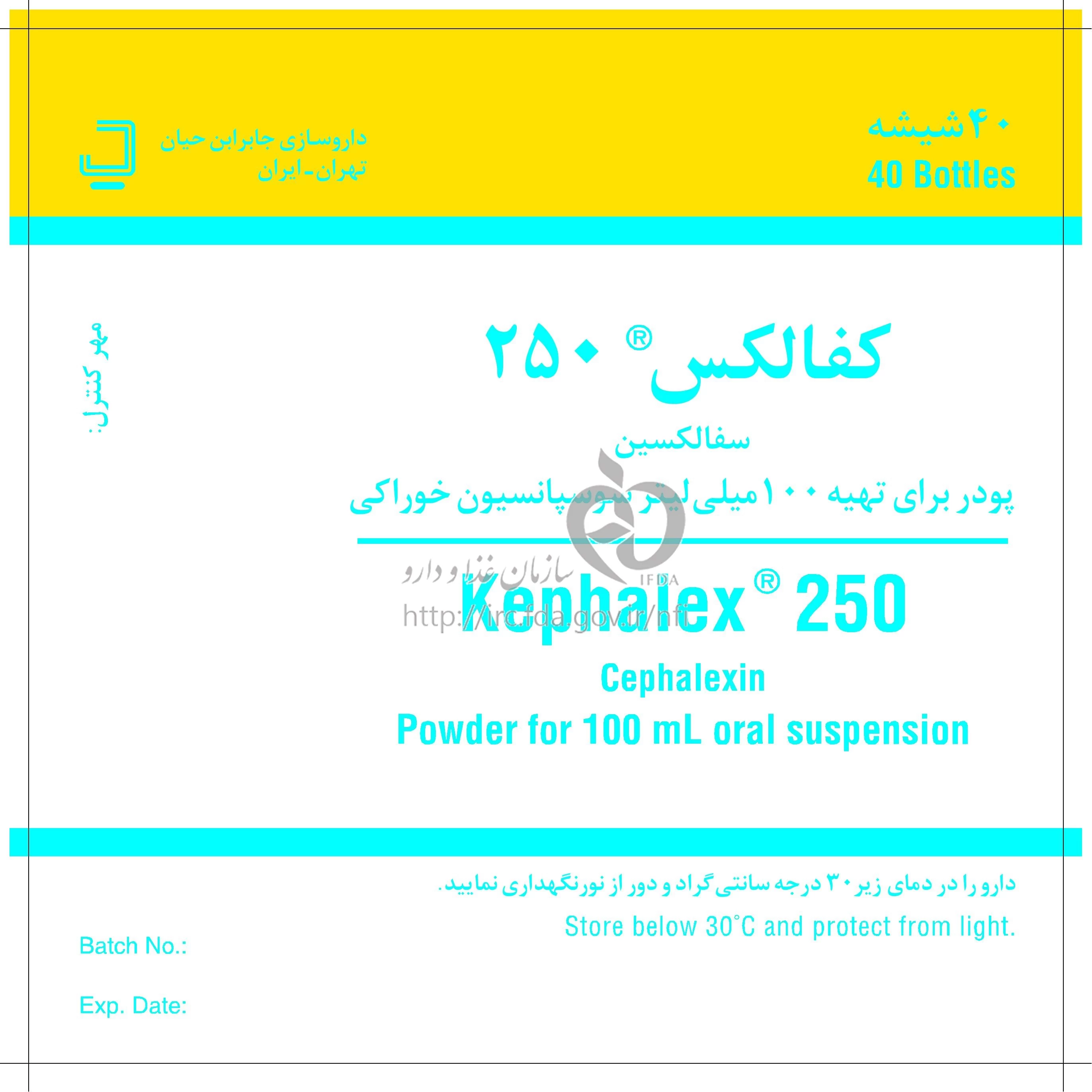 کفالکس پودر برای تهیه سوسپانسیون خوراکی 250 mg/5 mL 100MILLILITER