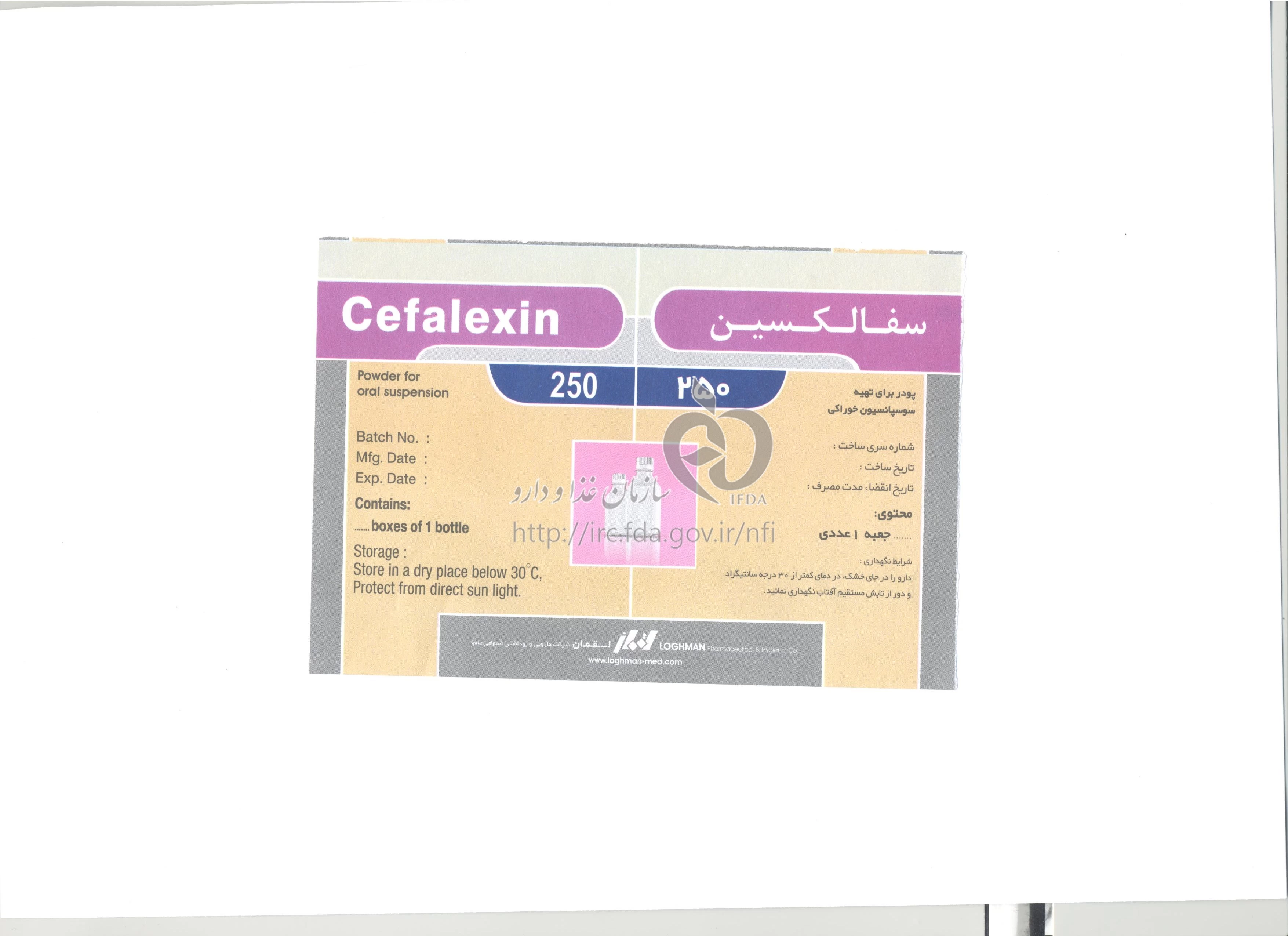 سفالکسین پودر برای تهیه سوسپانسیون خوراکی 250 mg/5 mL 100MILLILITER