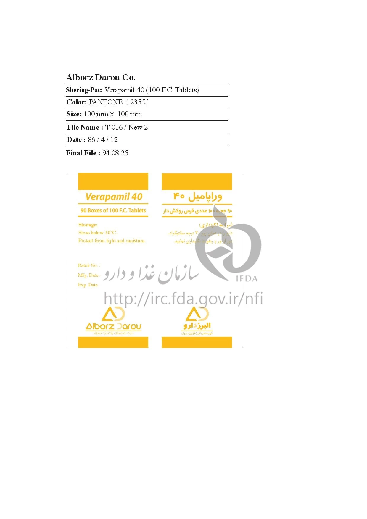 نکات قابل توصیه وراپامیل قرص خوراکی 40 mg