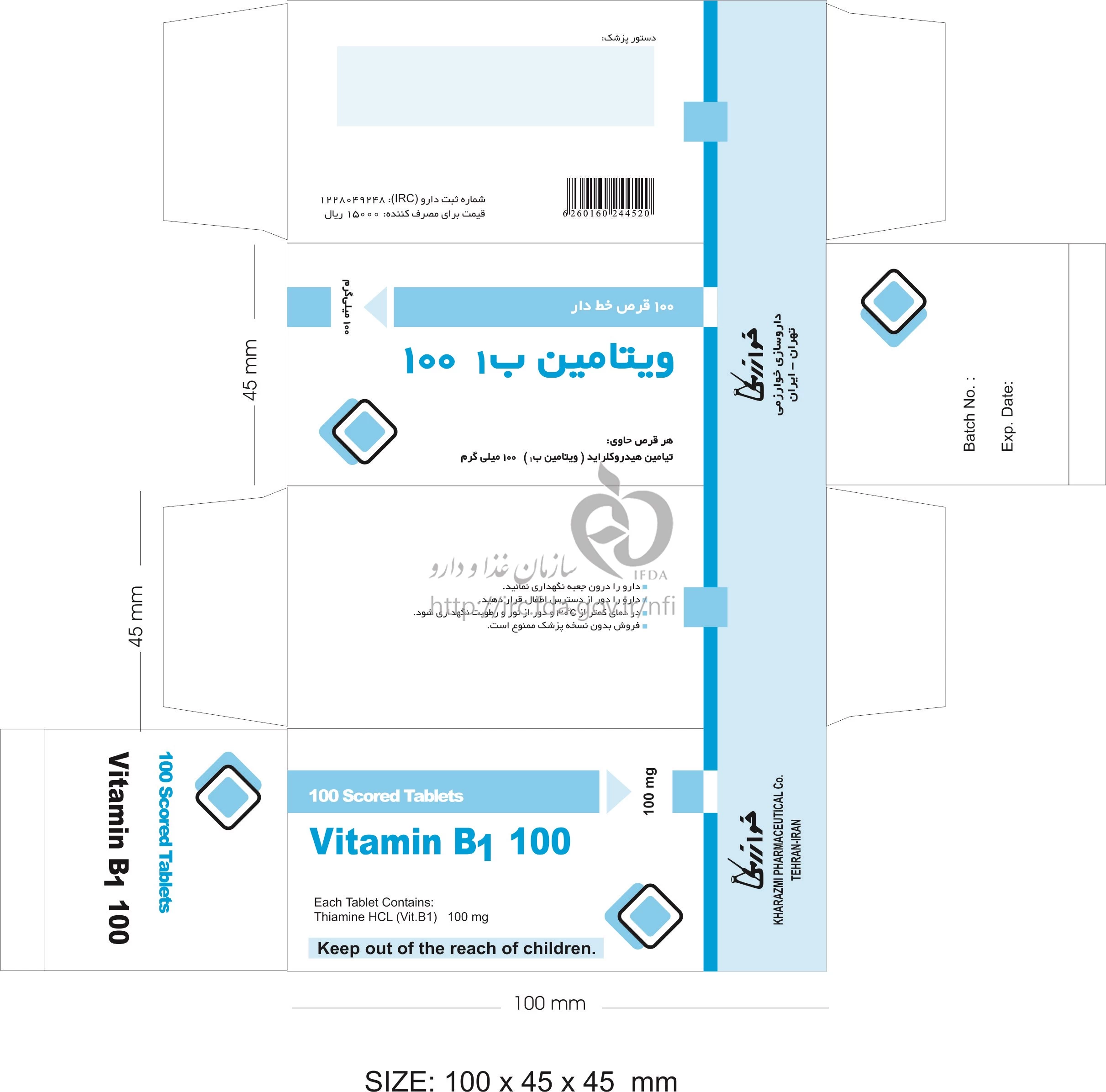 ویتامین ب1 قرص خوراکی 100 mg