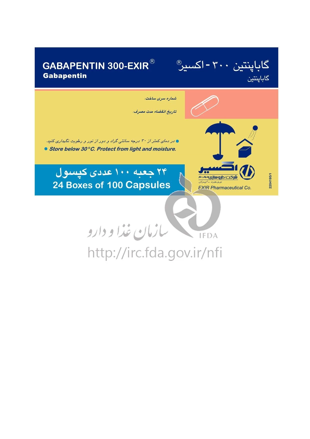گاباپنتین - اکسیر کپسول خوراکی 300 mg