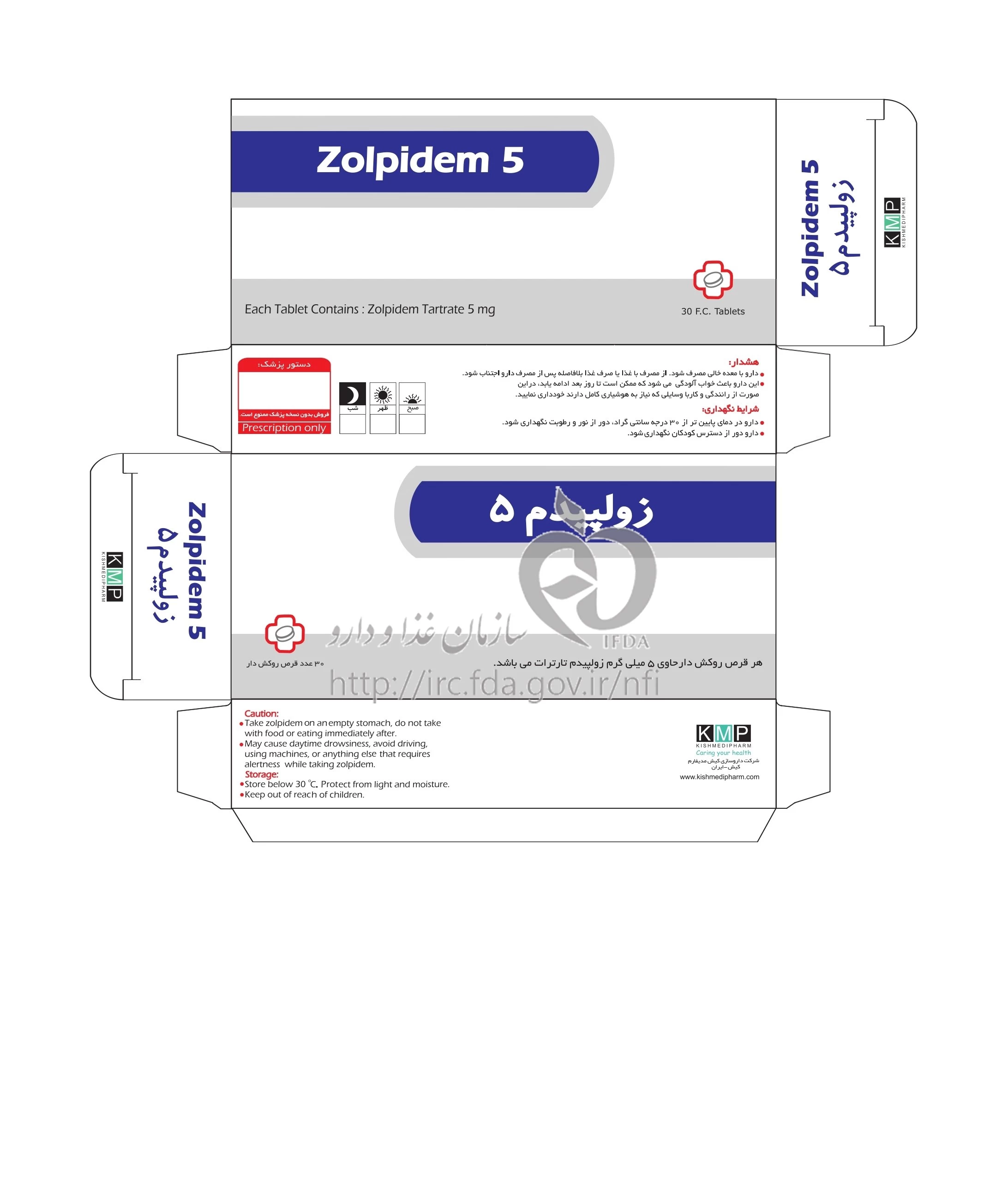 نام عمومی ZOLPIDEM TABLET ORAL 5 mg