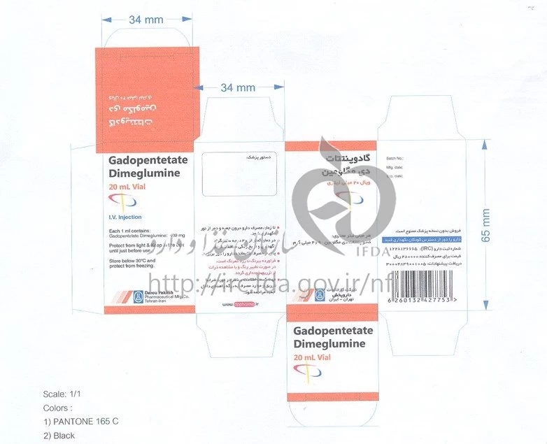 گادوپنتتات دی مگلومین تزریقی پرنترال 469 mg/1mL 20MILLILITER