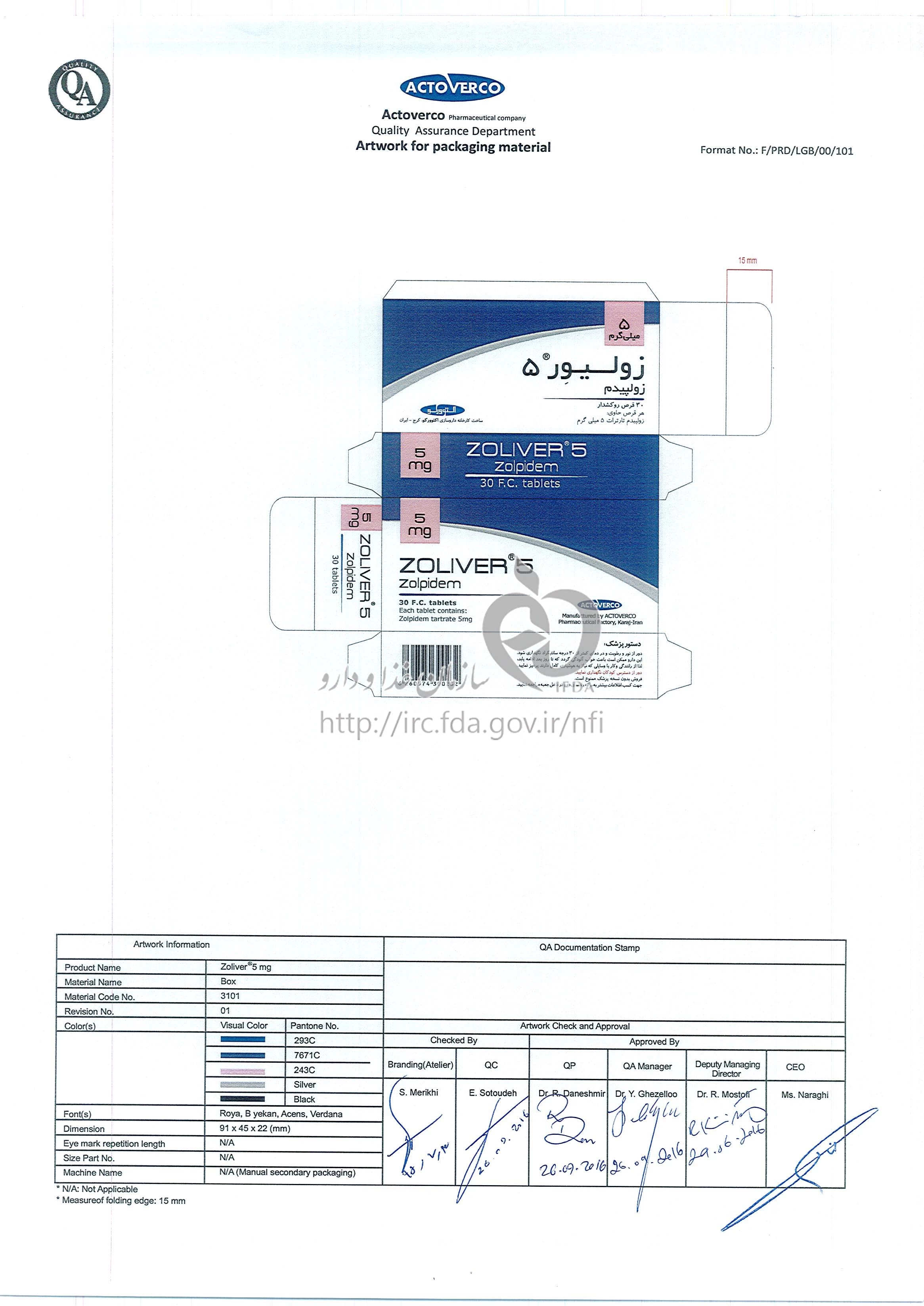 موارد مصرف ، عوارض جانبی ، مصرف بارداری و تداخلات دارویی زولیور قرص خوراکی 5 mg