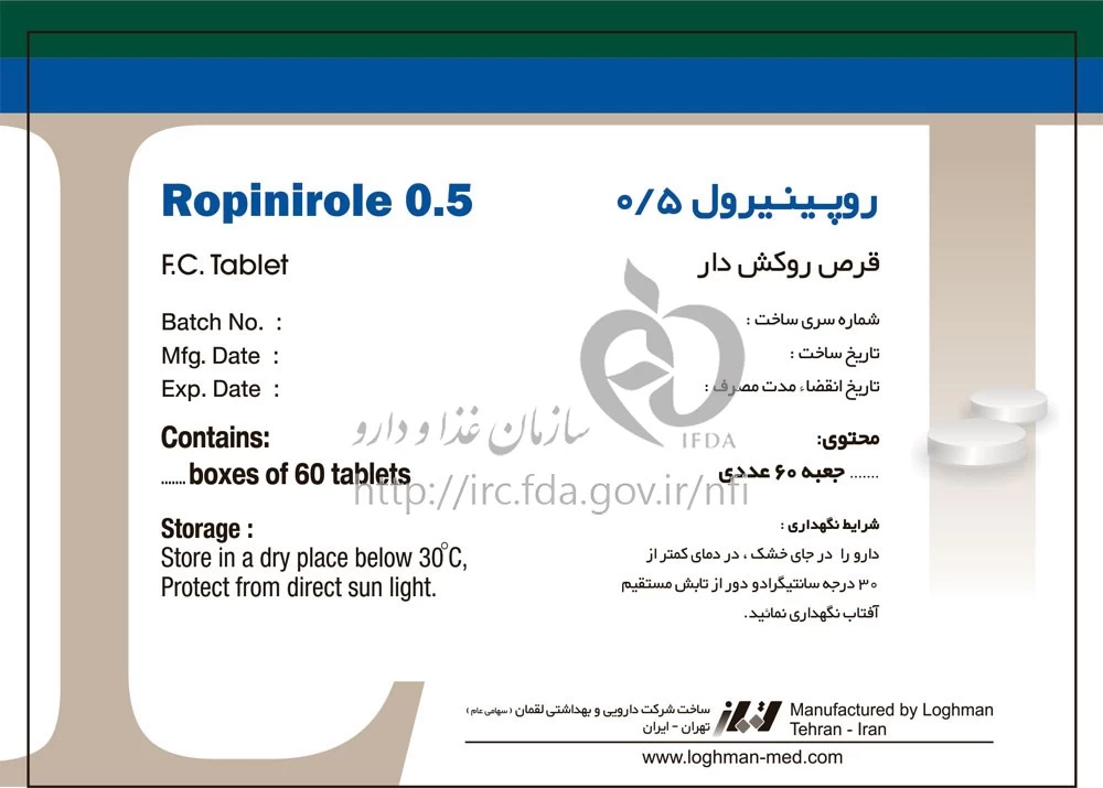 نکات قابل توصیه روپینیرول قرص خوراکی 0.5 mg