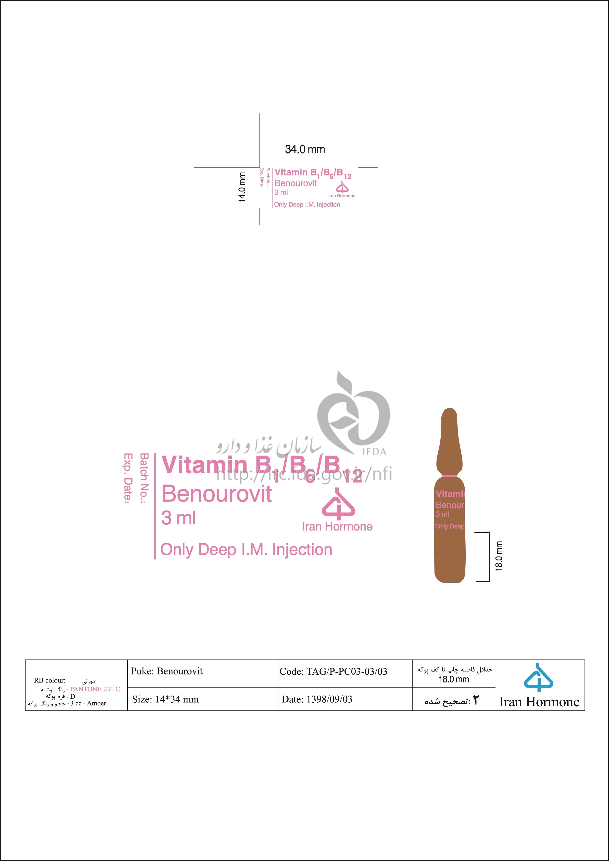 بنوروویت تزریقی پرنترال 100 mg/100 mg/1000 ug/3mL
