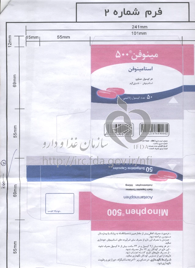 مینوفن کپسول با روکش ژلاتین خوراکی 500 mg