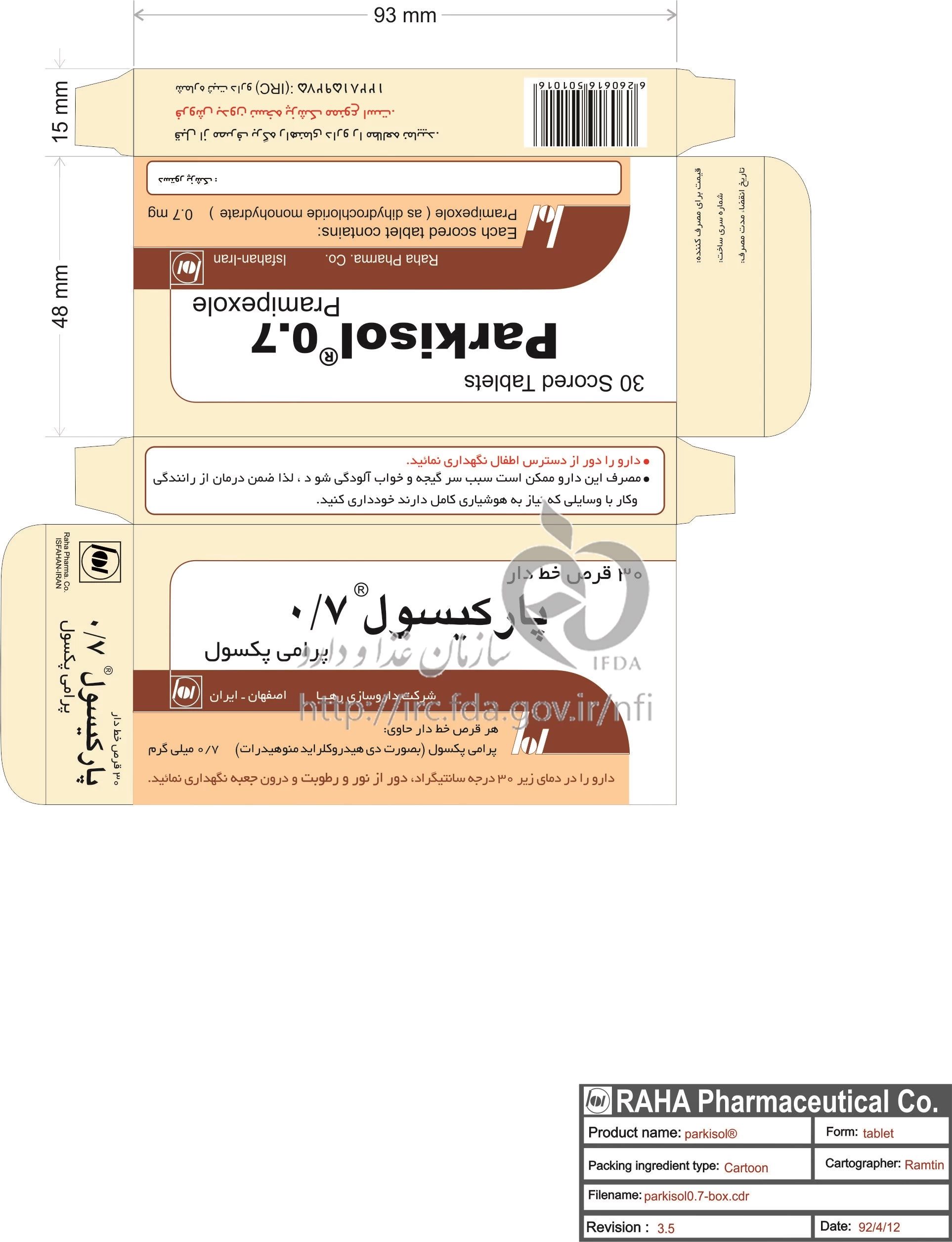 نکات قابل توصیه پارکیسول قرص خوراکی 1 mg