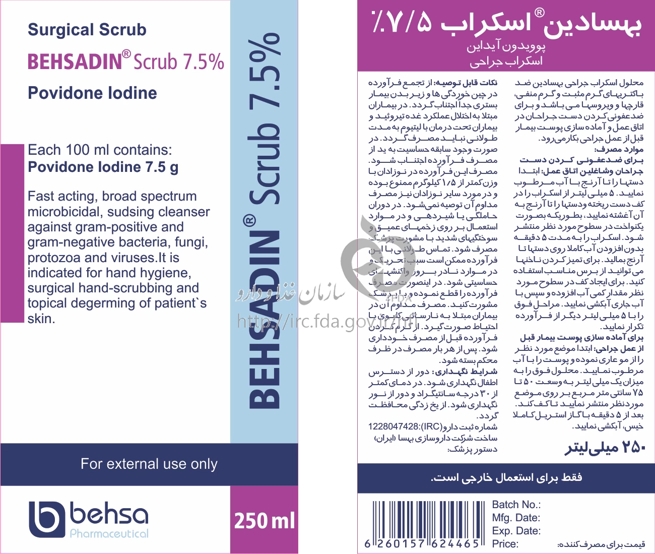 بهسادین محلول موضعی 7.5 % 250MILLILITER
