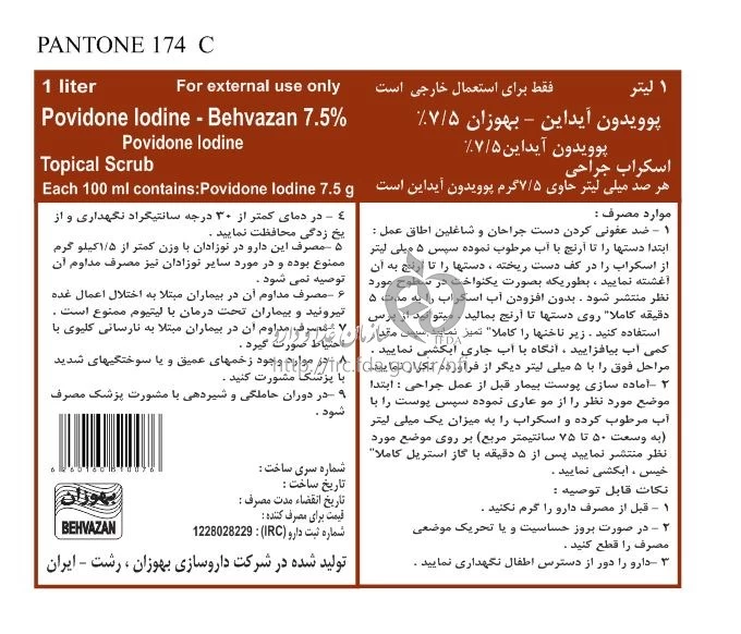 پوویدون آیداین - بهوزان محلول موضعی 7.5 % 1LITER