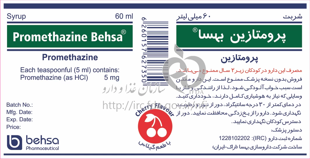 پرومتازین بهسا شربت خوراکی 5 mg/5mL 60MILLILITER
