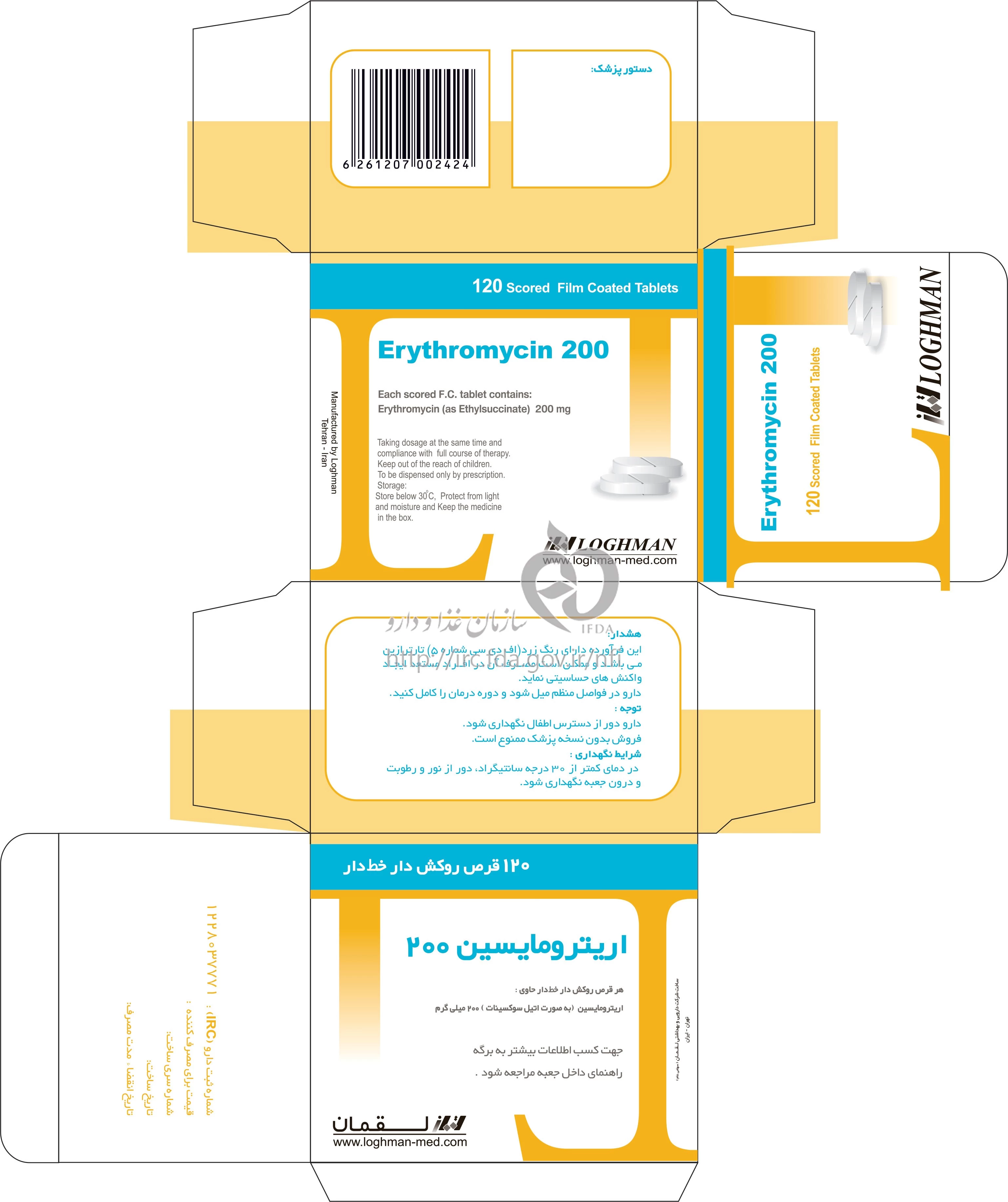دکترها اریترومایسین قرص خوراکی 200 mg