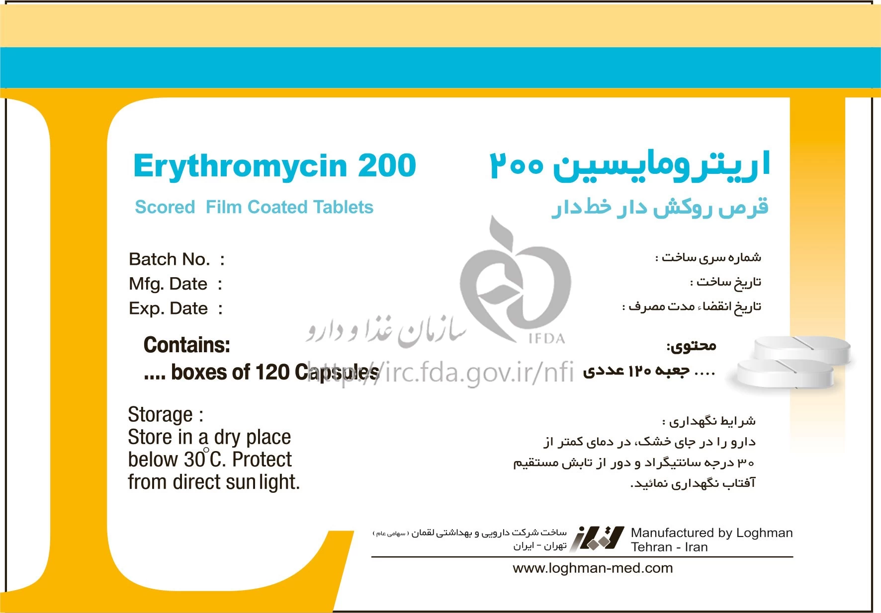 اریترومایسین قرص خوراکی 200 mg