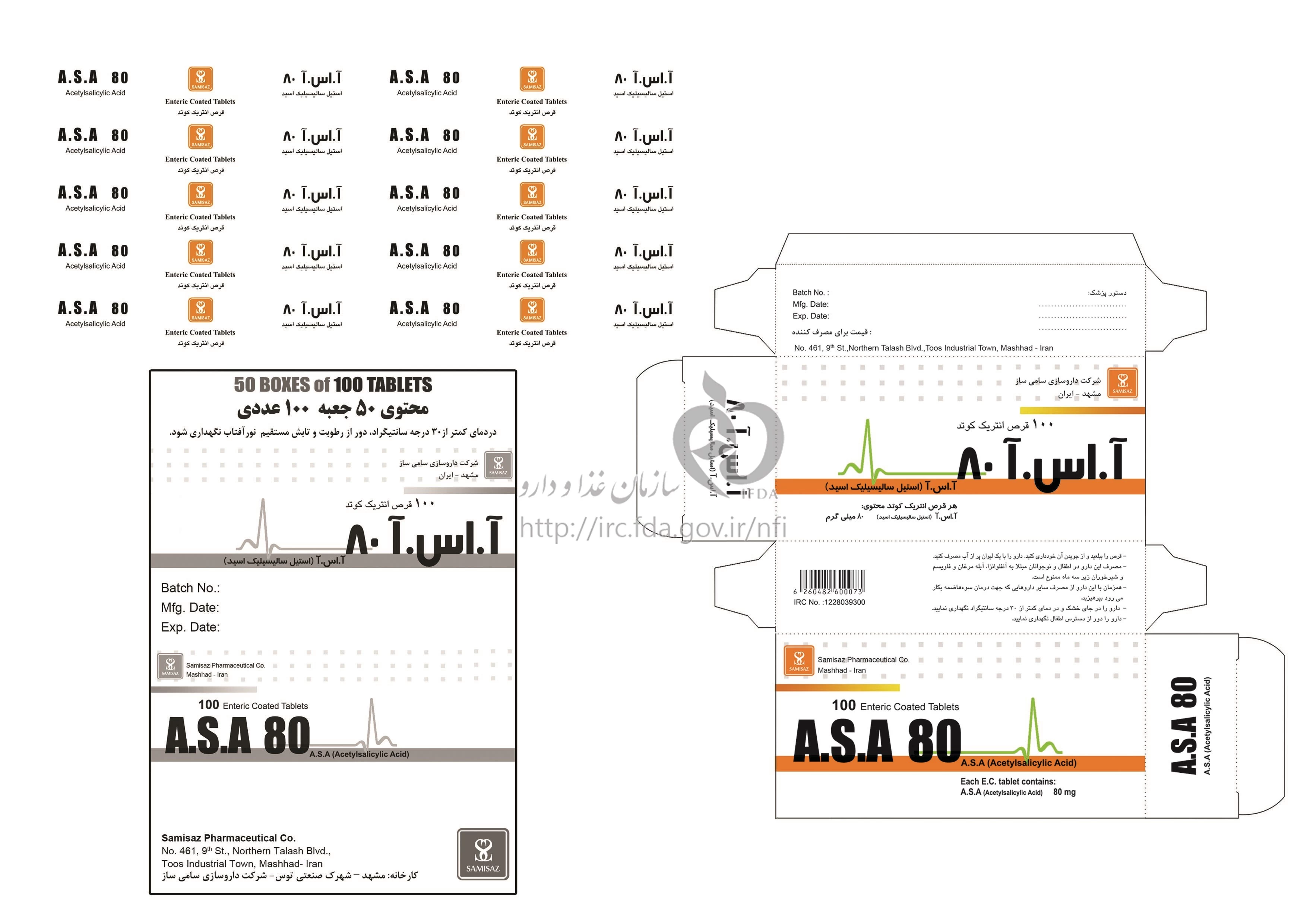 آ اس آ قرص انتریک کوتد خوراکی 80 mg