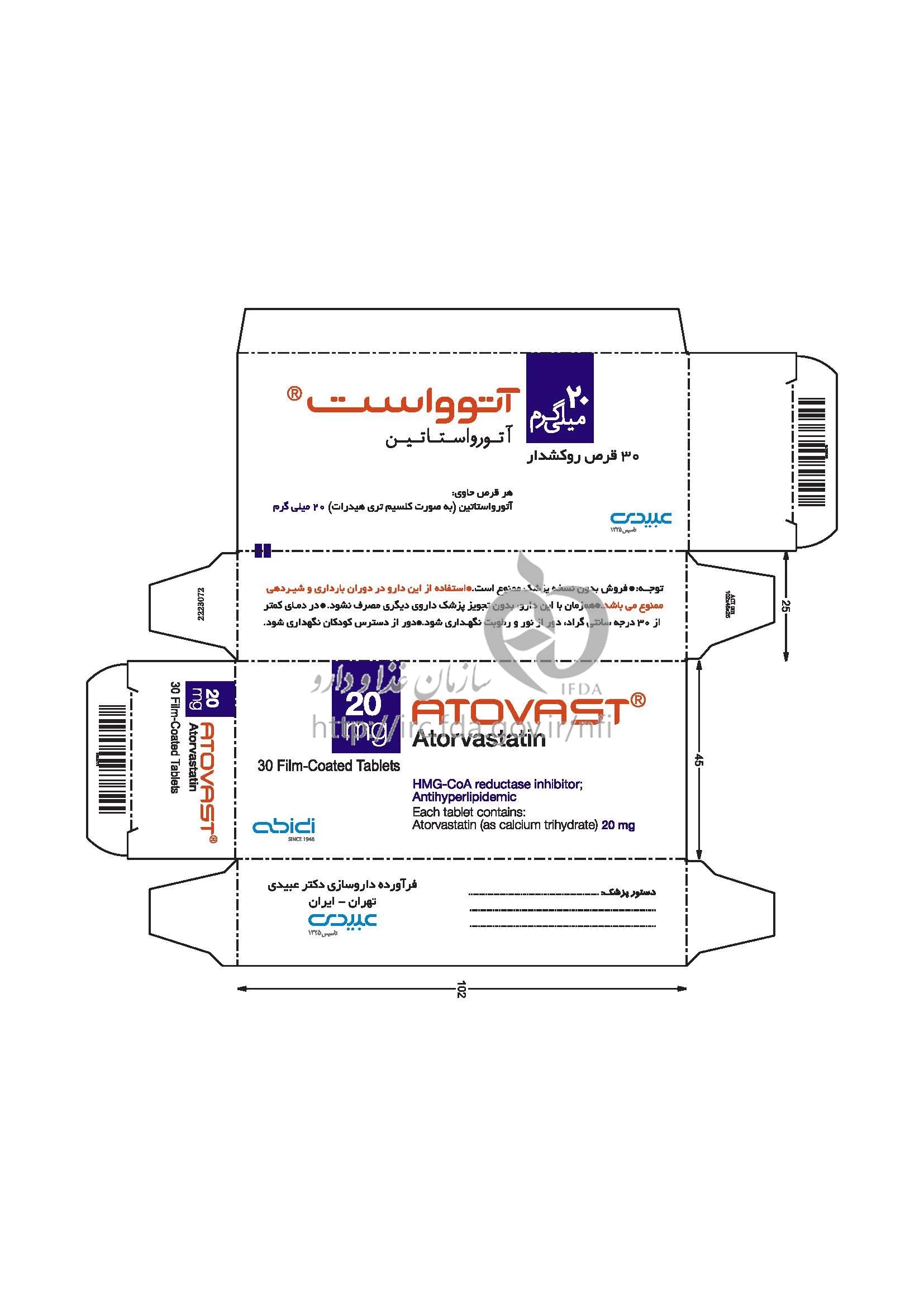 آتوواست قرص خوراکی 20 mg