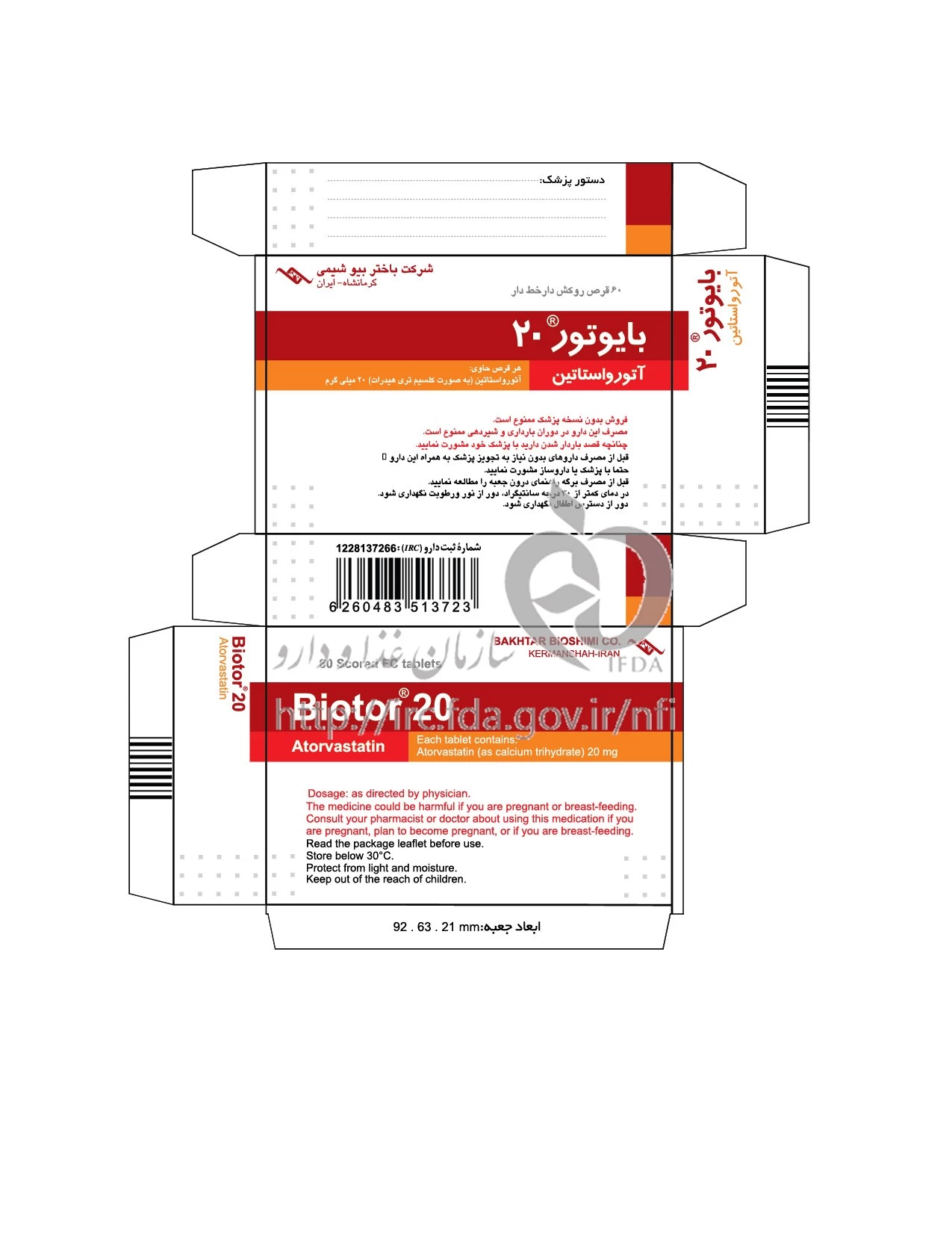 موارد مصرف ، عوارض جانبی ، مصرف بارداری و تداخلات دارویی بایوتور قرص خوراکی 20 mg