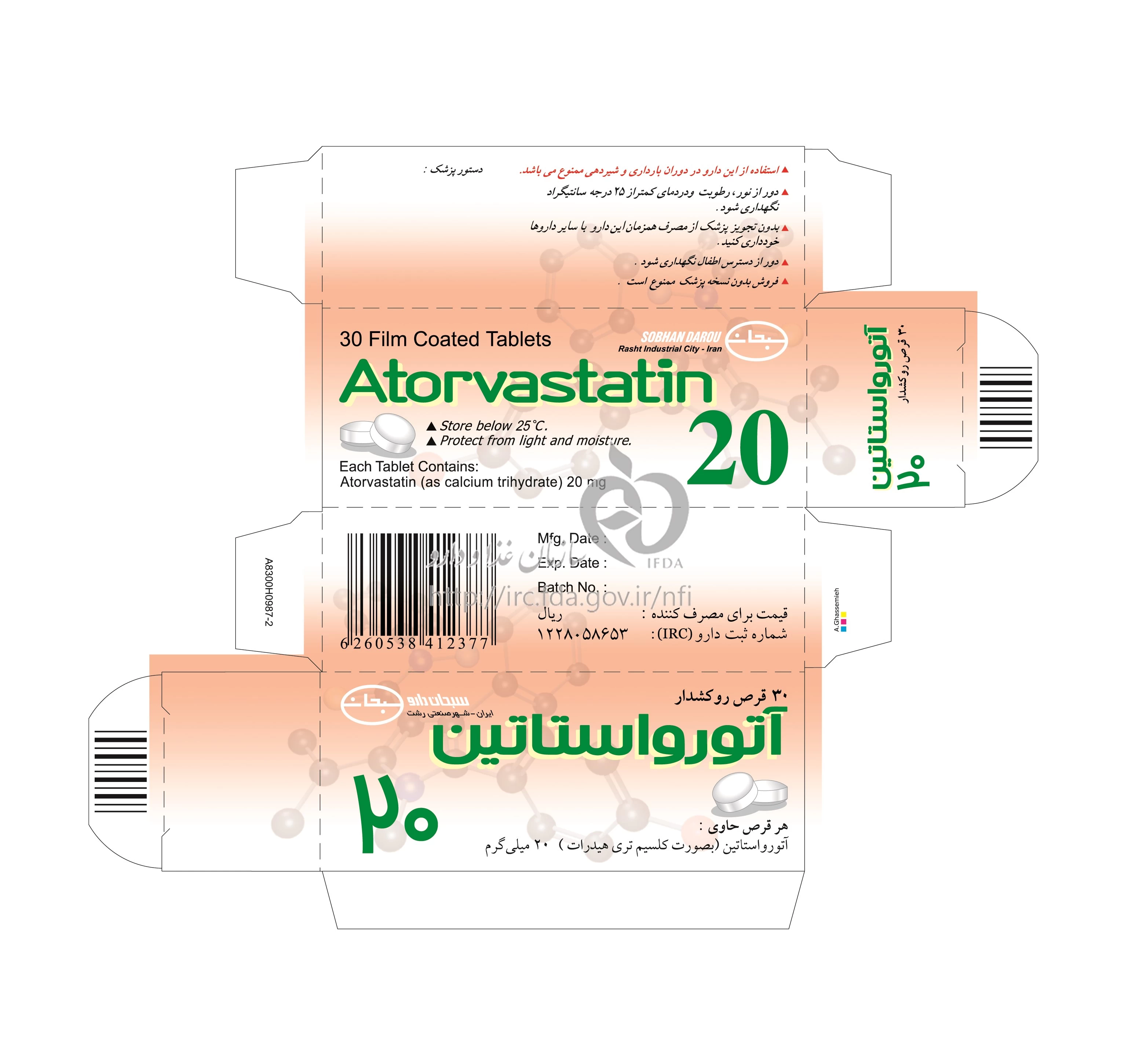موارد مصرف ، عوارض جانبی ، مصرف بارداری و تداخلات دارویی آتورواستاتین قرص خوراکی 20 mg