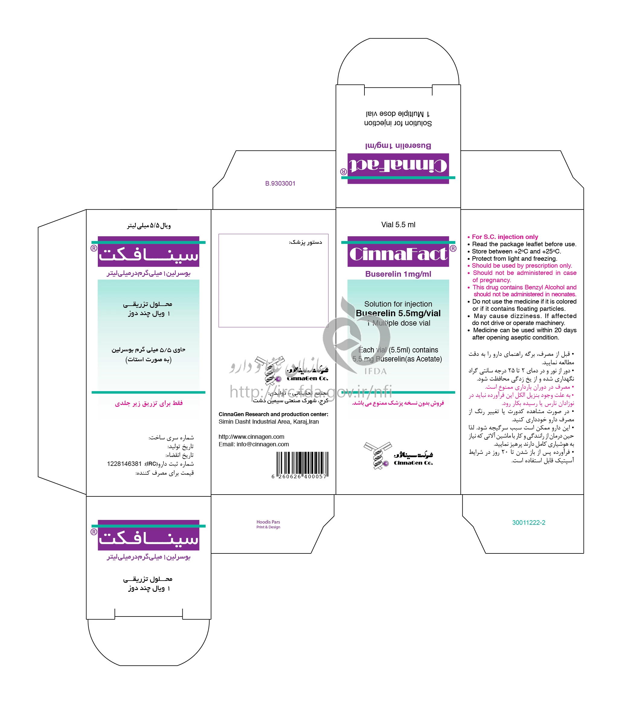 BUSERELIN ACETATE INJECTION PARENTERAL 1 mg/1mL 5.5MILLILITER