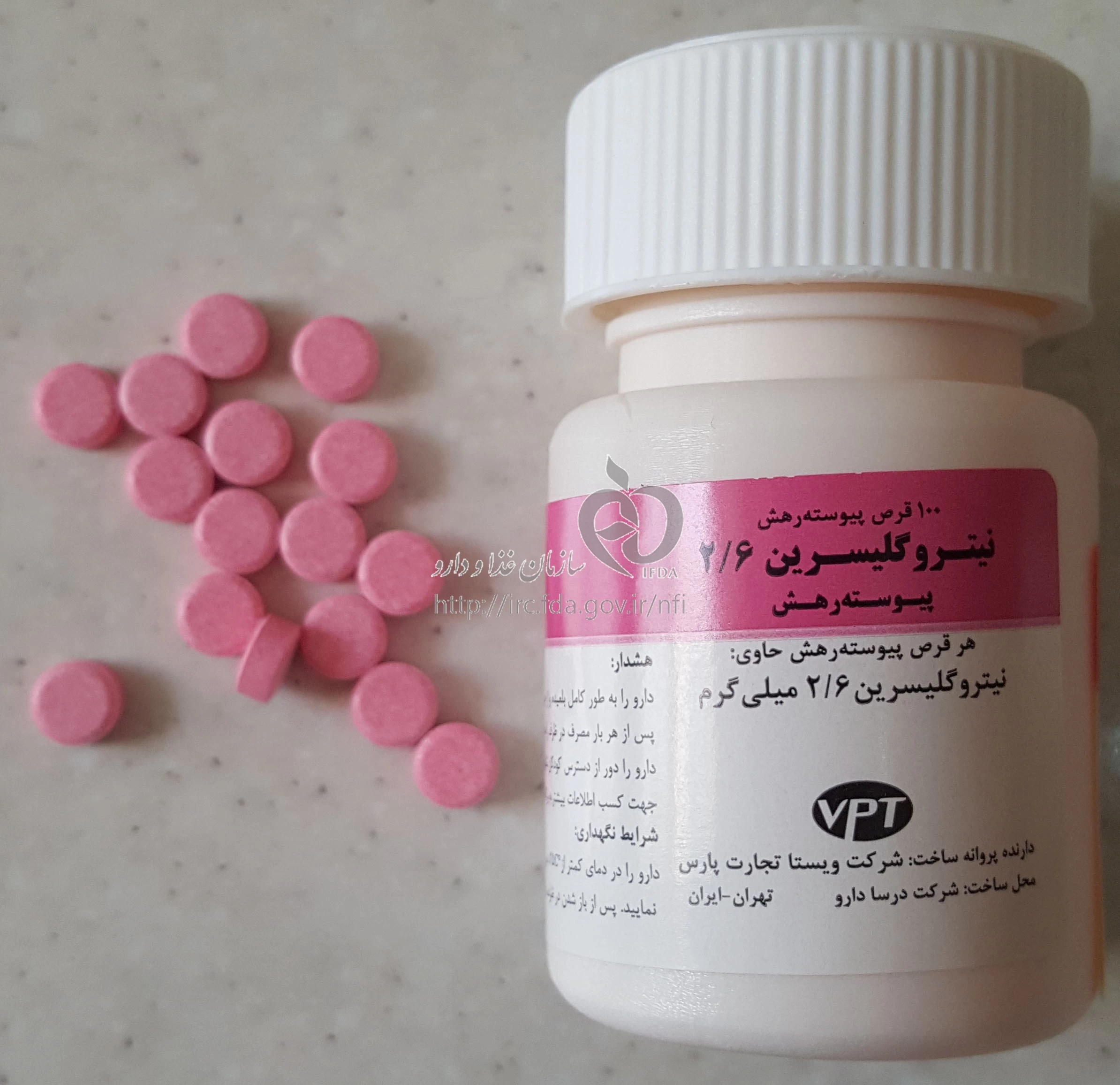 نیتروگلیسرین قرص پیوسته رهش خوراکی 2.6 mg