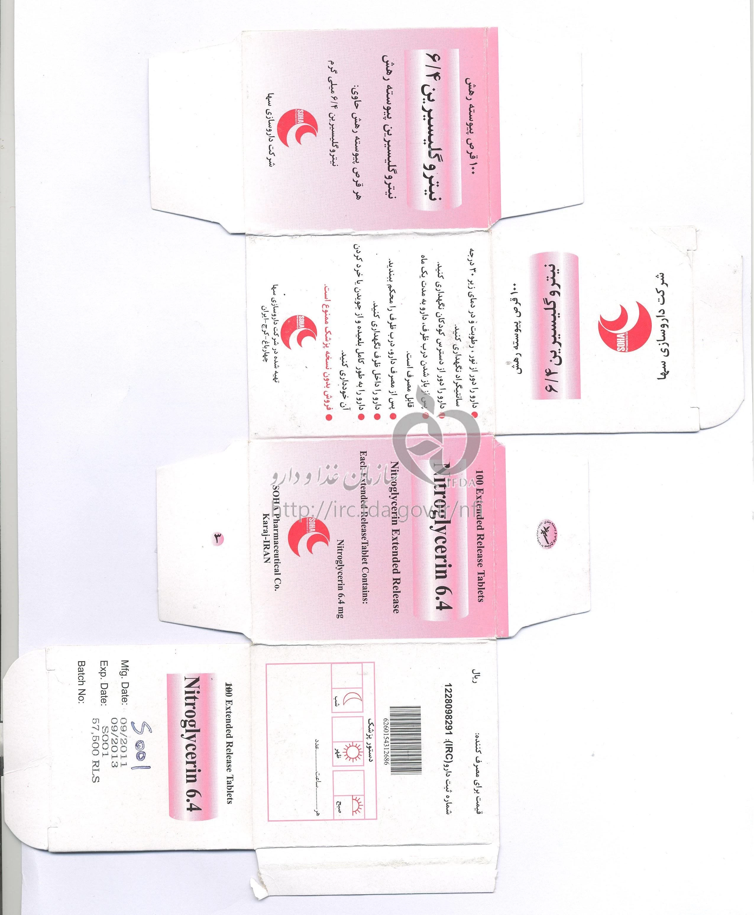 نیتروگلیسرین سها قرص پیوسته رهش خوراکی 6.4 mg