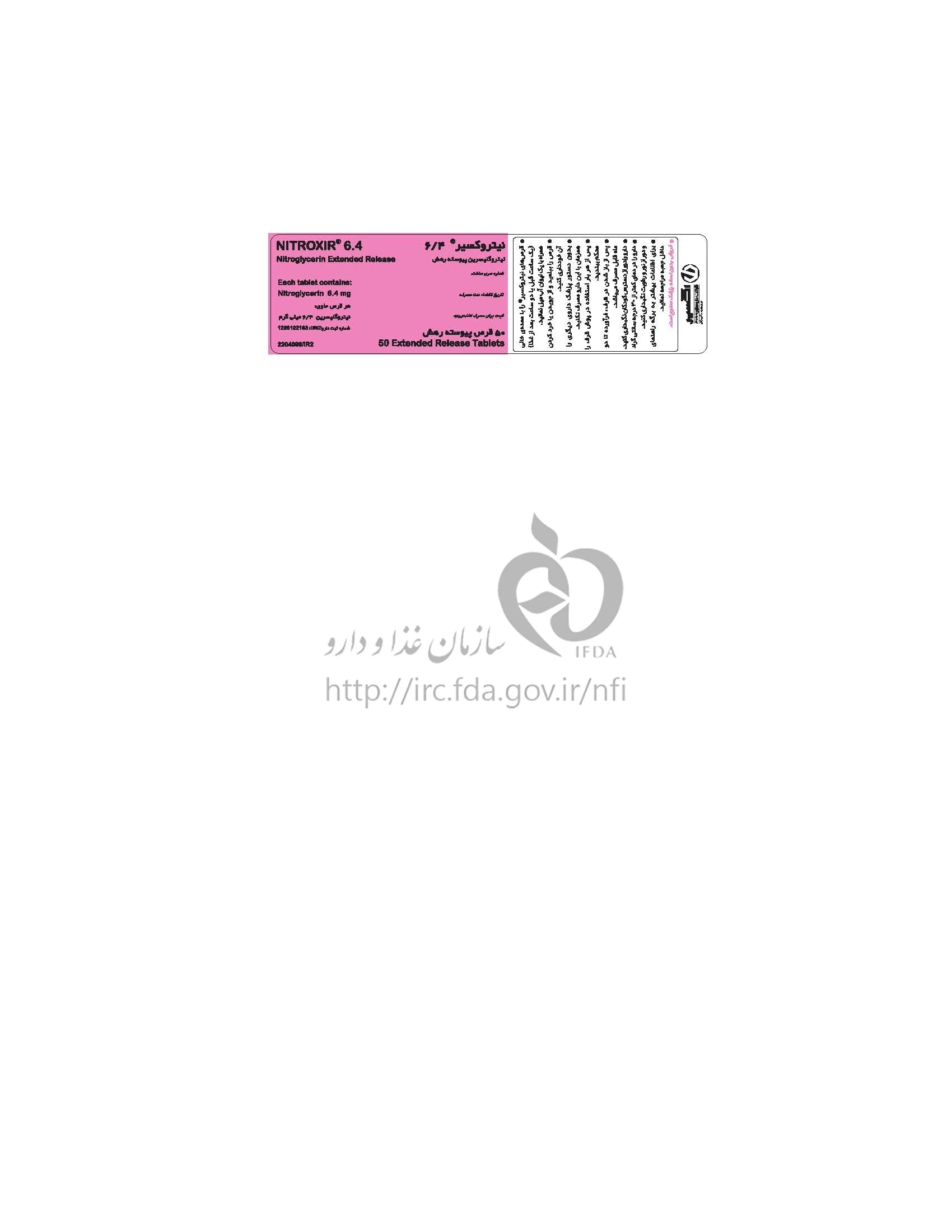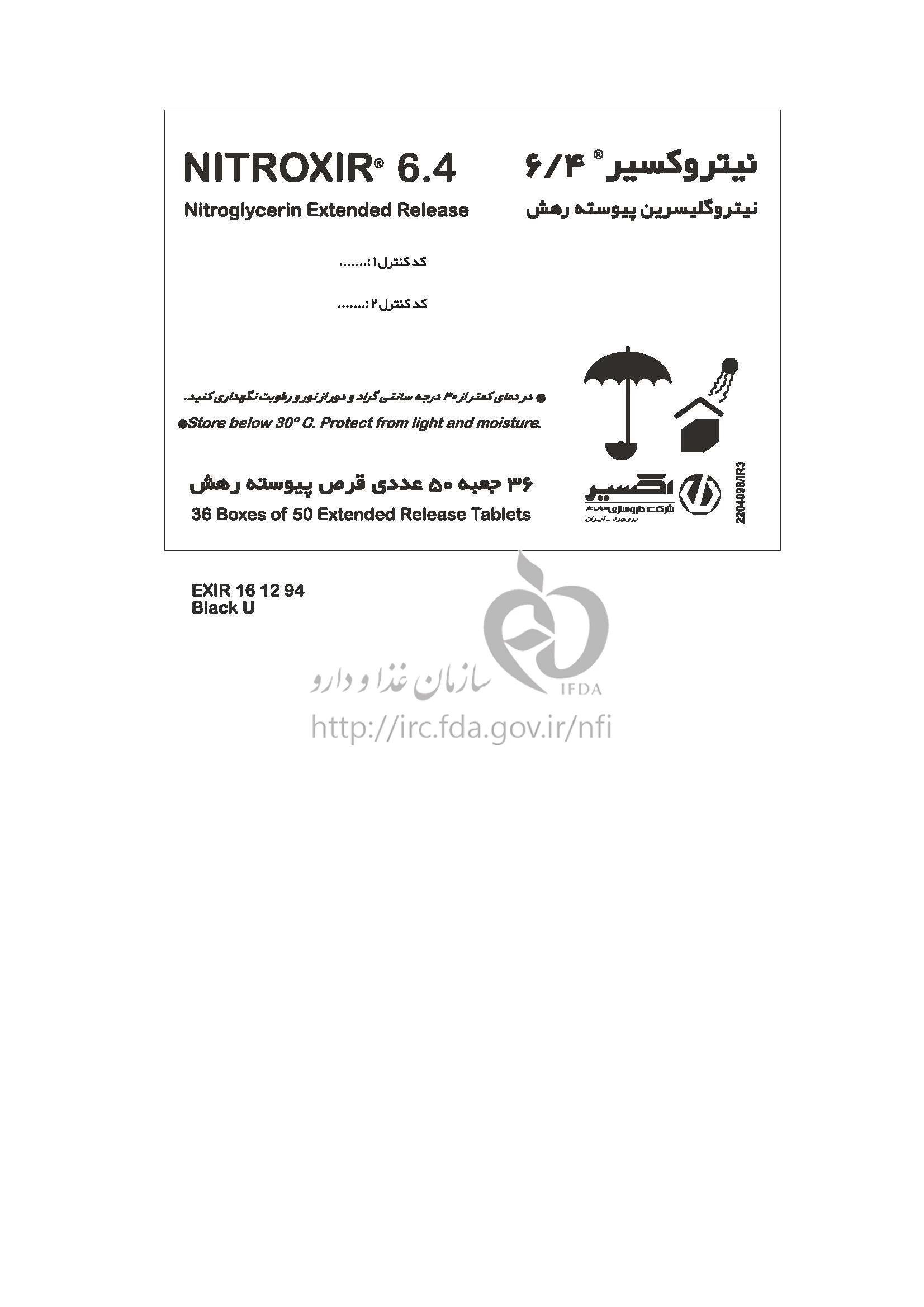 نیتروکسیر قرص پیوسته رهش خوراکی 6.4 mg