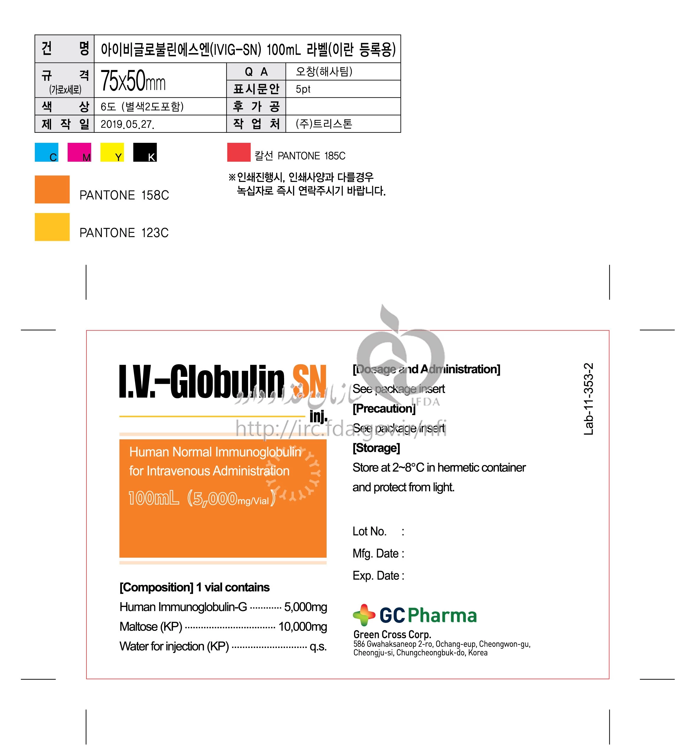 IMMUNE GLOBULIN INJECTION INTRAVENOUS 50 mg/1mL 100MILLILITER