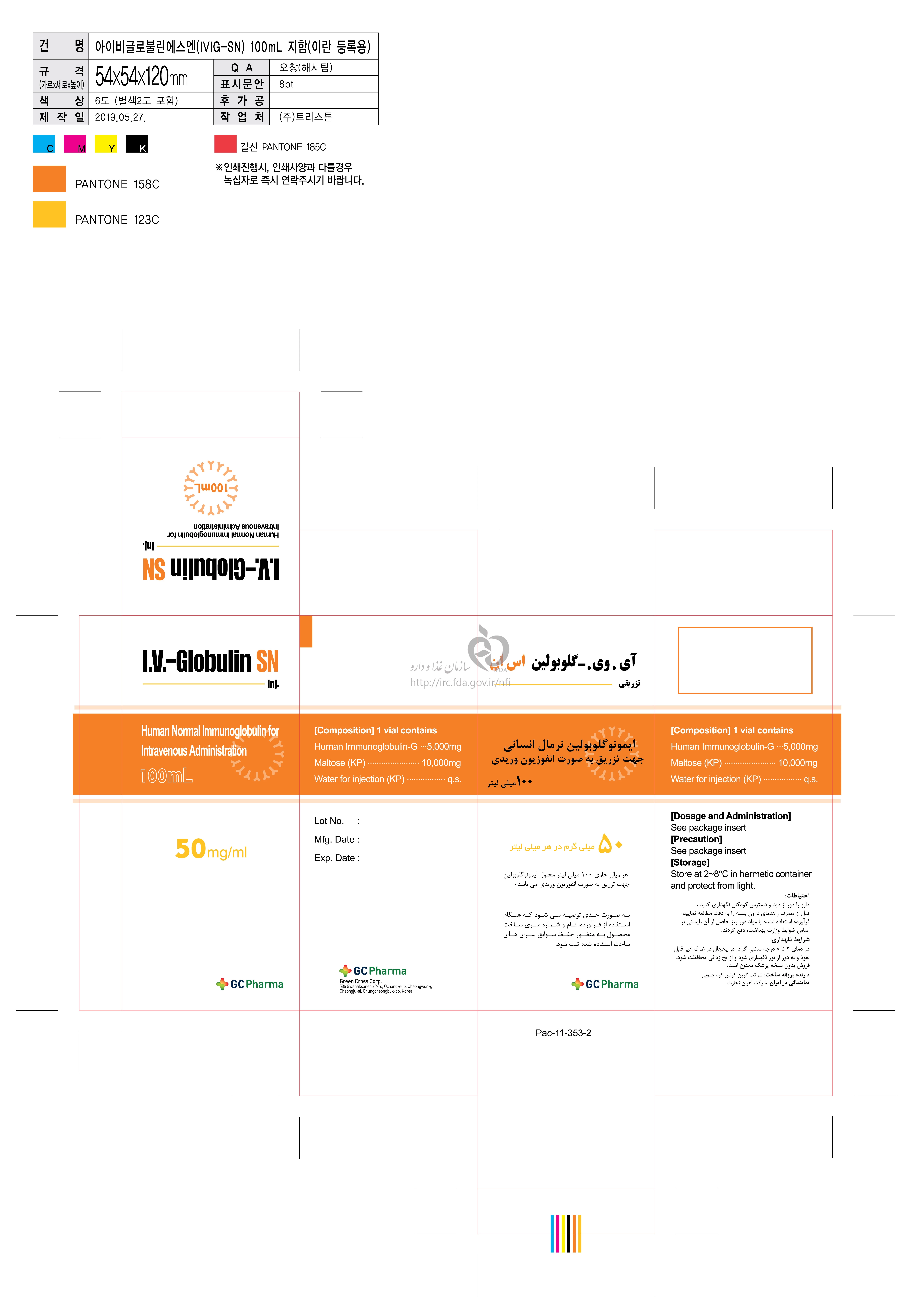 آی وی - گلوبولین اس ان تزریقی داخل وریدی 50 mg/1mL 100MILLILITER