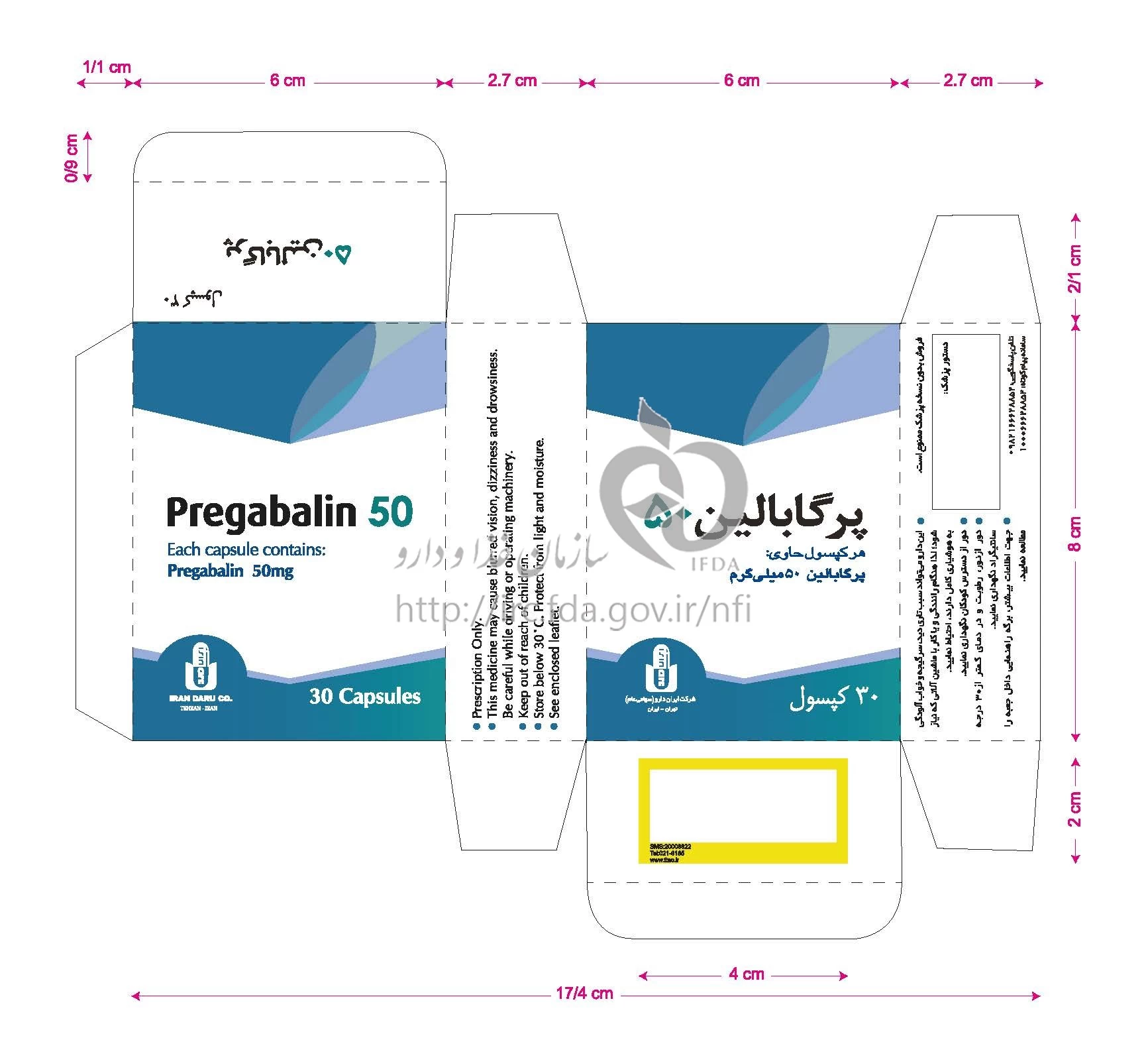 پرگابالین کپسول خوراکی 50 mg
