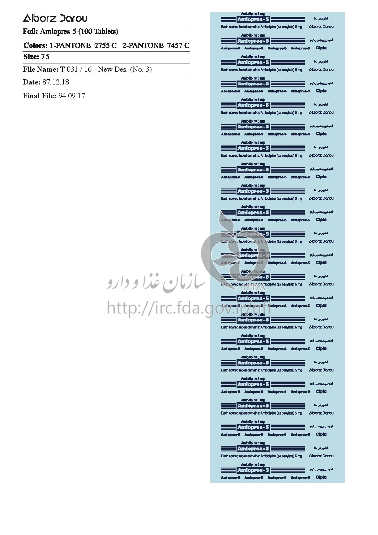 آملوپرس قرص خوراکی 5 mg