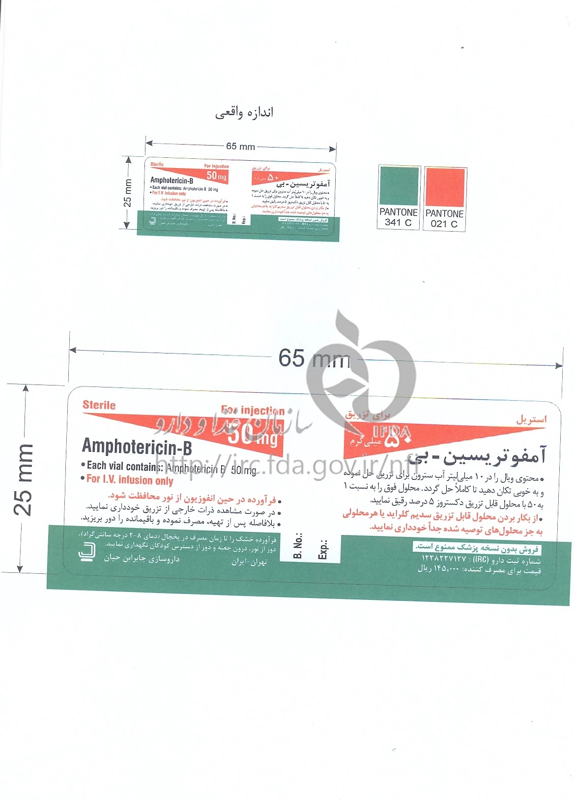 آمفوتریسین بی پودر لیوفیلیزه سوسپانسیون تزریقی پرنترال 50 mg