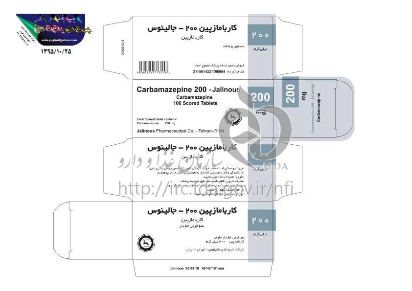 کاربامازپین - جالینوس قرص خوراکی 200 mg