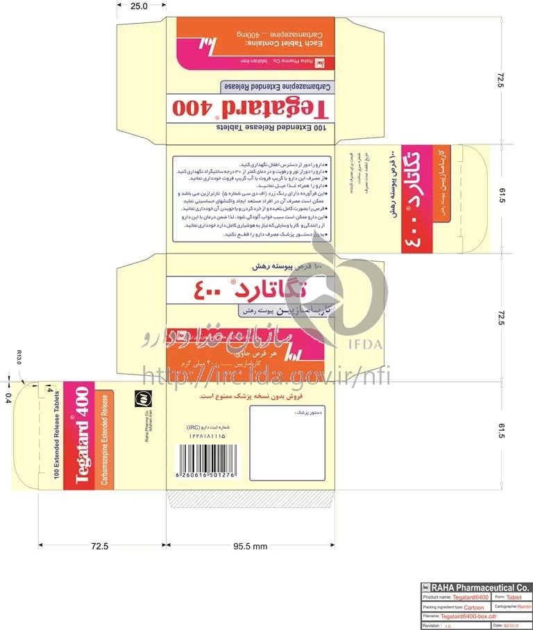 تگاتارد قرص پیوسته رهش خوراکی 400 mg