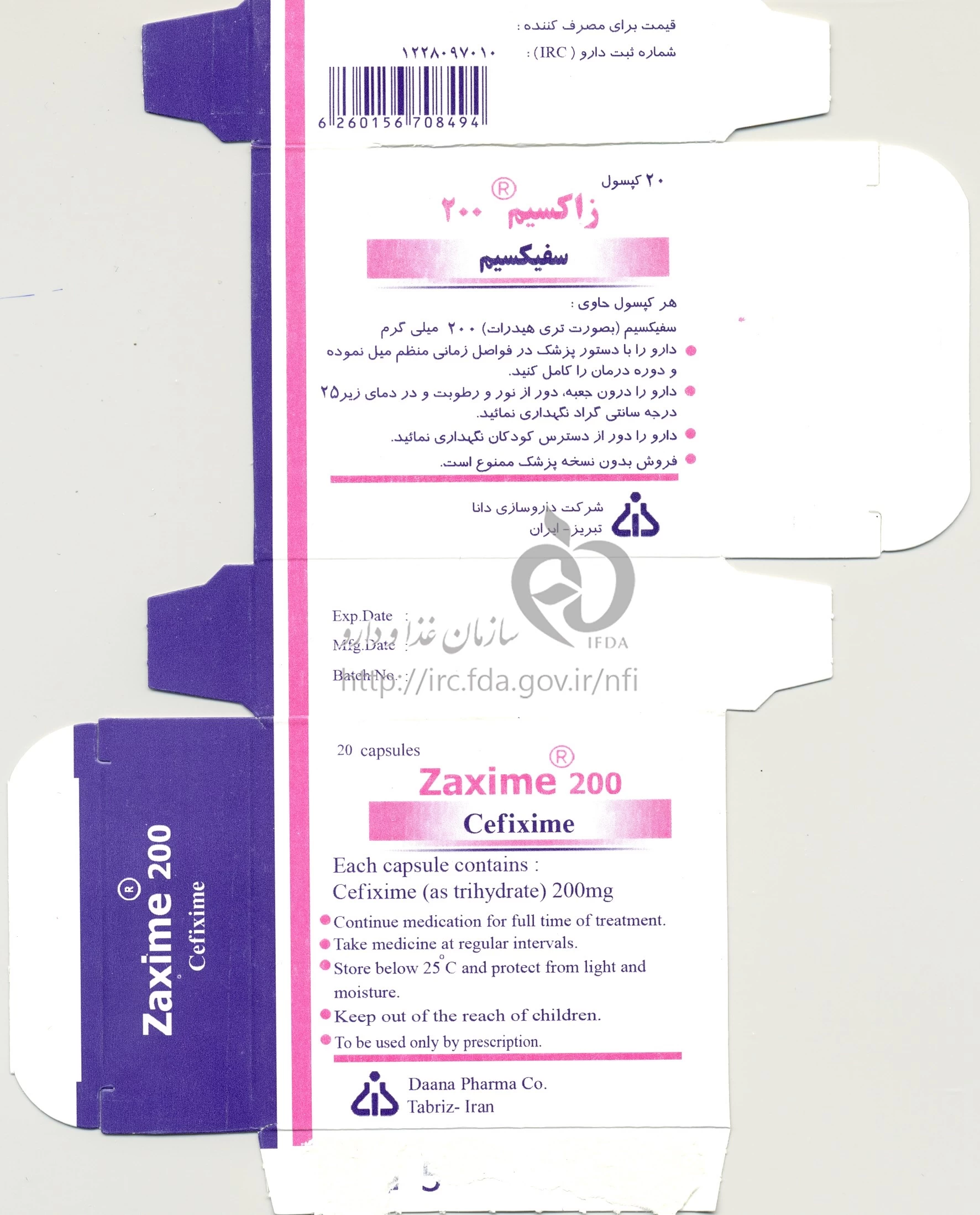 زاکسیم کپسول خوراکی 200 mg