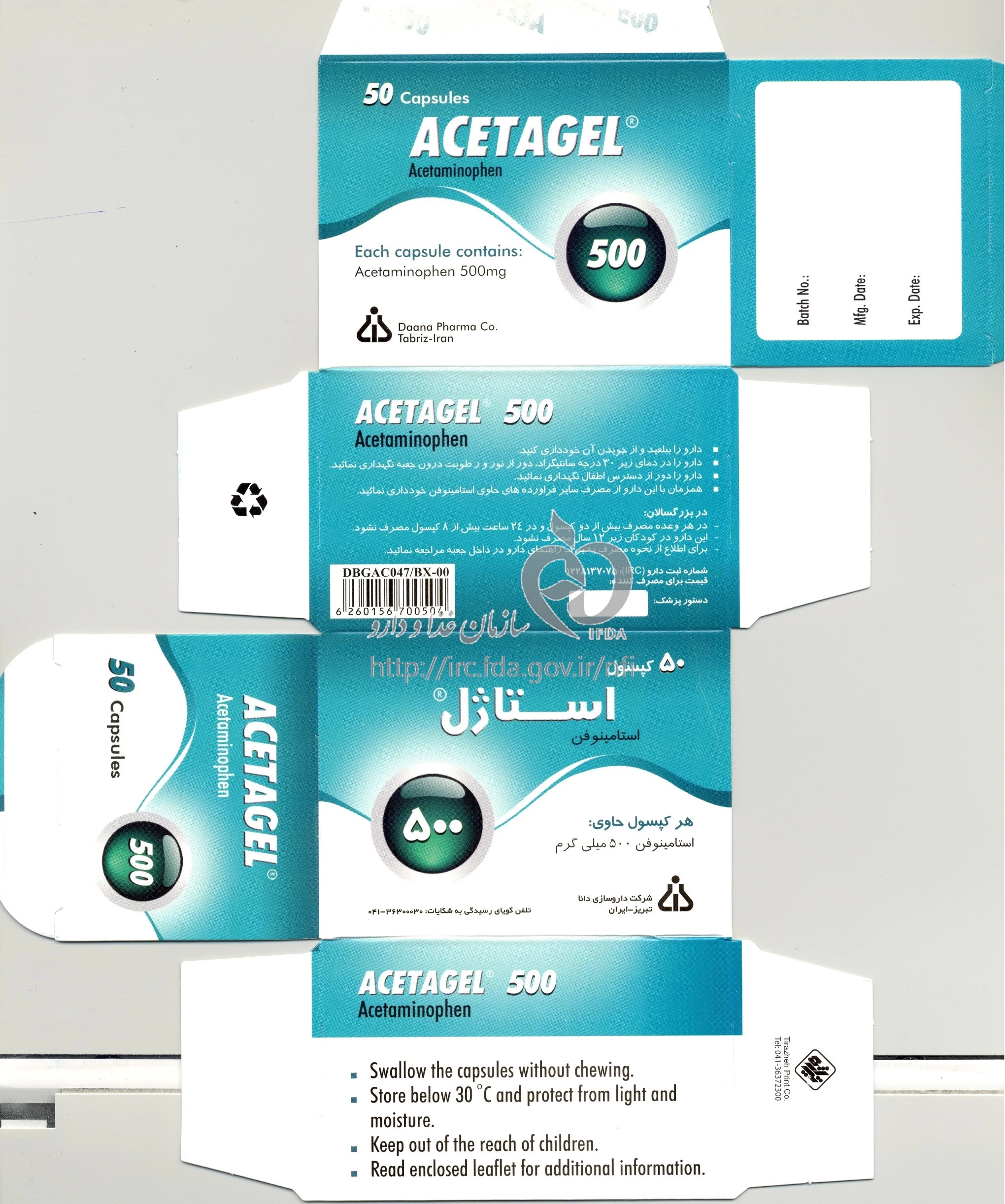 استاژل کپسول با روکش ژلاتین خوراکی 500 mg