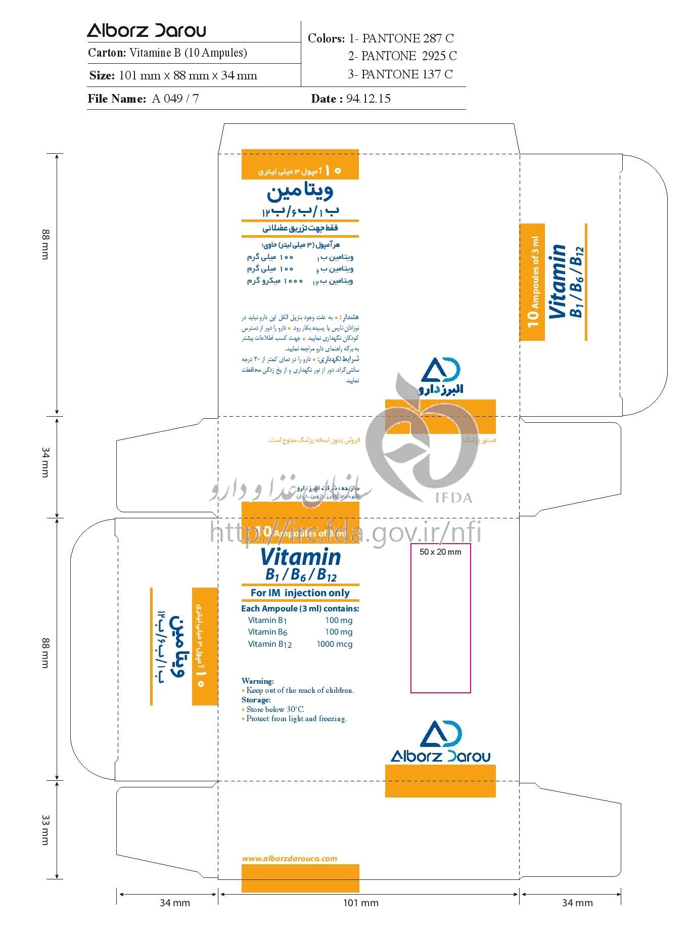 ویتامین ب1/ب6/ب12 تزریقی پرنترال 100 mg/100 mg/1000 ug/3mL
