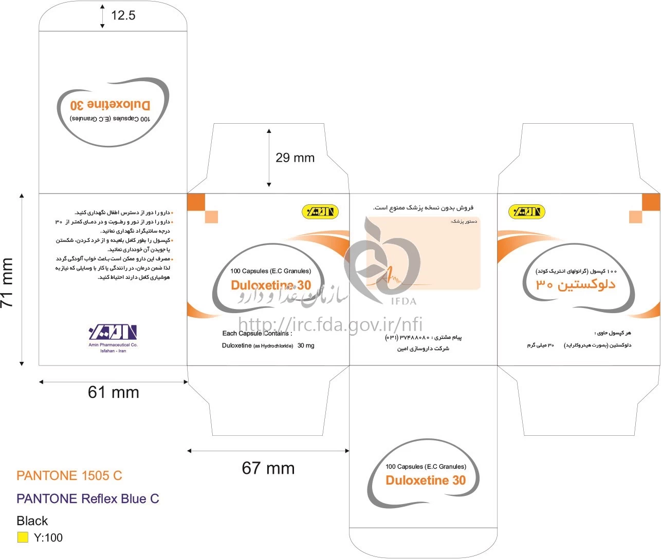 دلوکستین کپسول انتریک کوتد خوراکی 30 mg