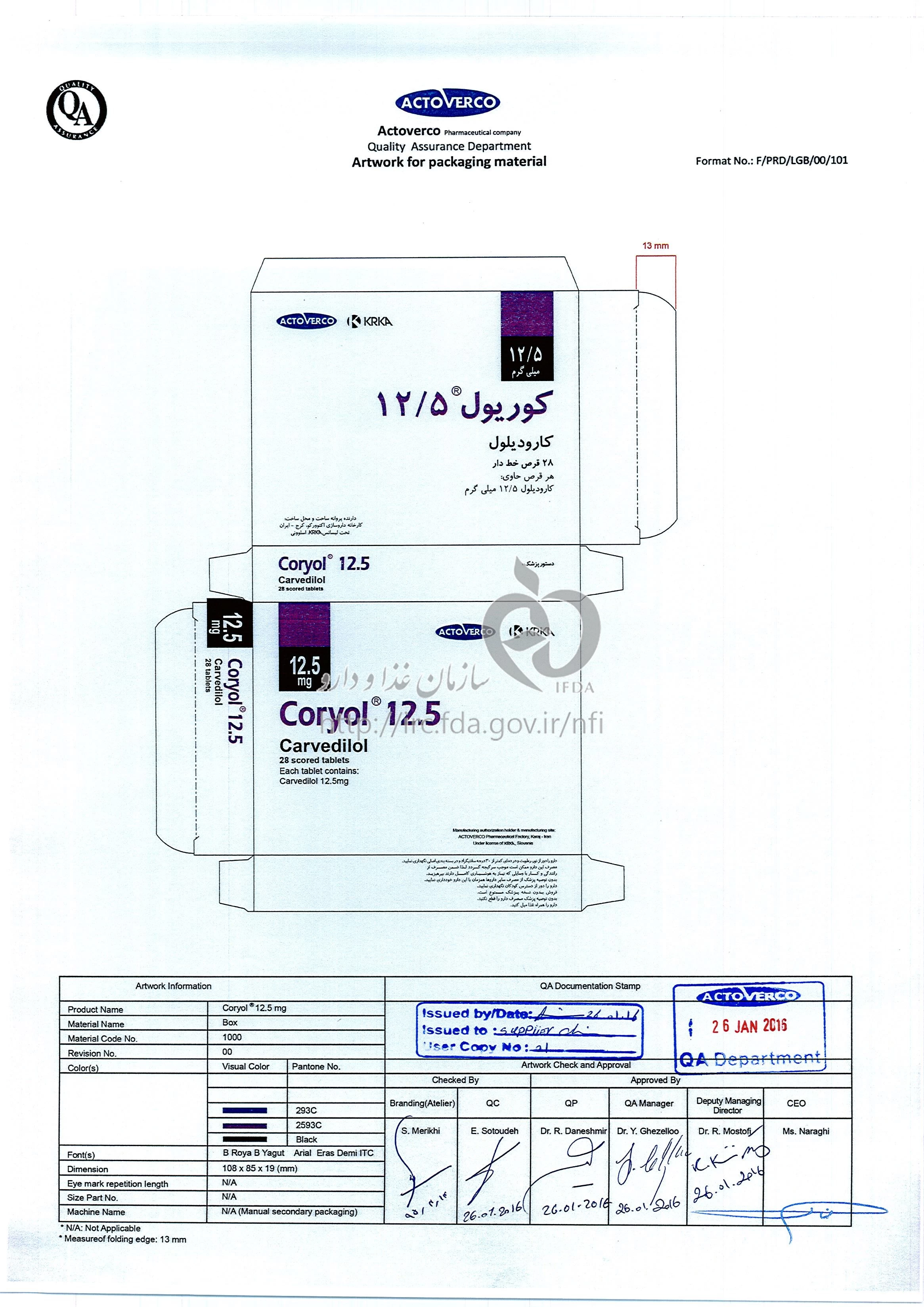 کوریول قرص خوراکی 12.5 mg