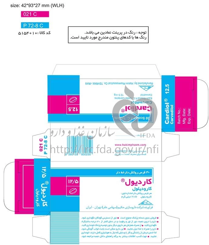 کاردیول قرص خوراکی 12.5 mg